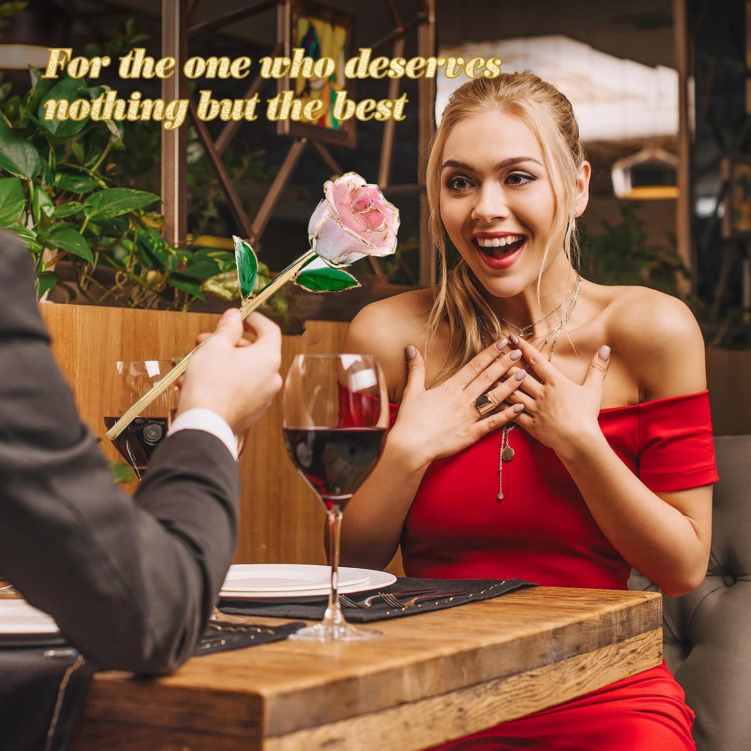 Mikasol Real 24K Gold Dipped Realistic Rose – Timeless Lifelike Bloom with Heart Puzzle Base – Romantic Gradient Pink Flower Gift for Her, Wife, Girlfriend, Mom – Birthday, Anniversary, Mother’s Day