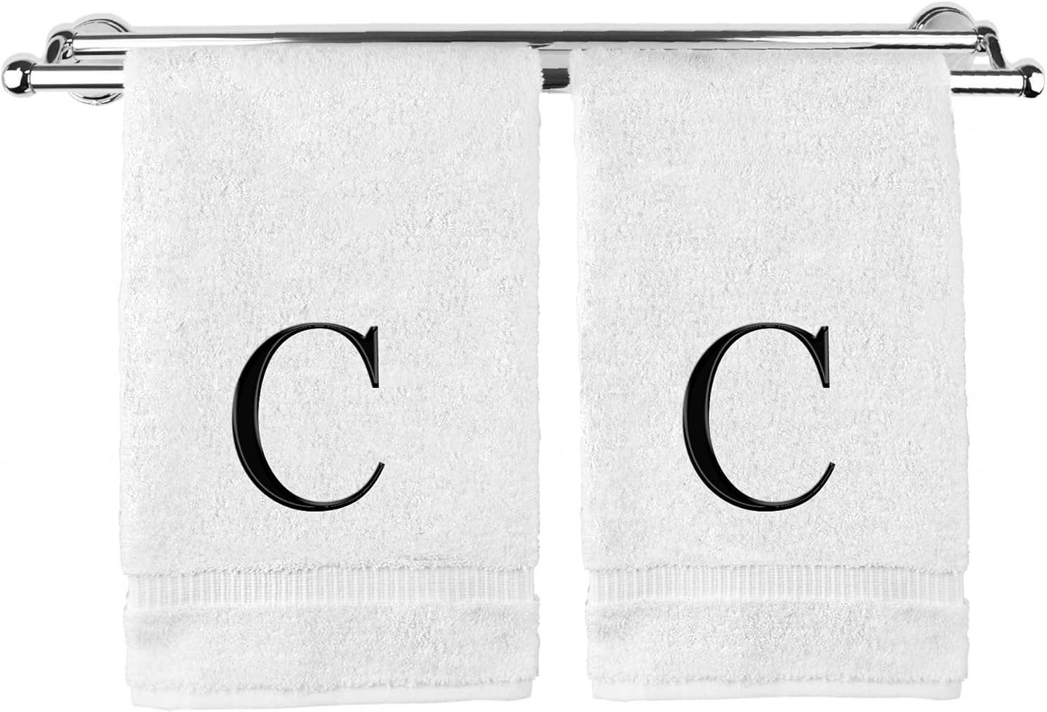 Monogrammed Hand Towel, Personalized Gift, Set of 2- Black Block Letter Embroidered Towel - Extra Absorbent 100% Turkish Cotton - Soft Terry Finish - Initial C White