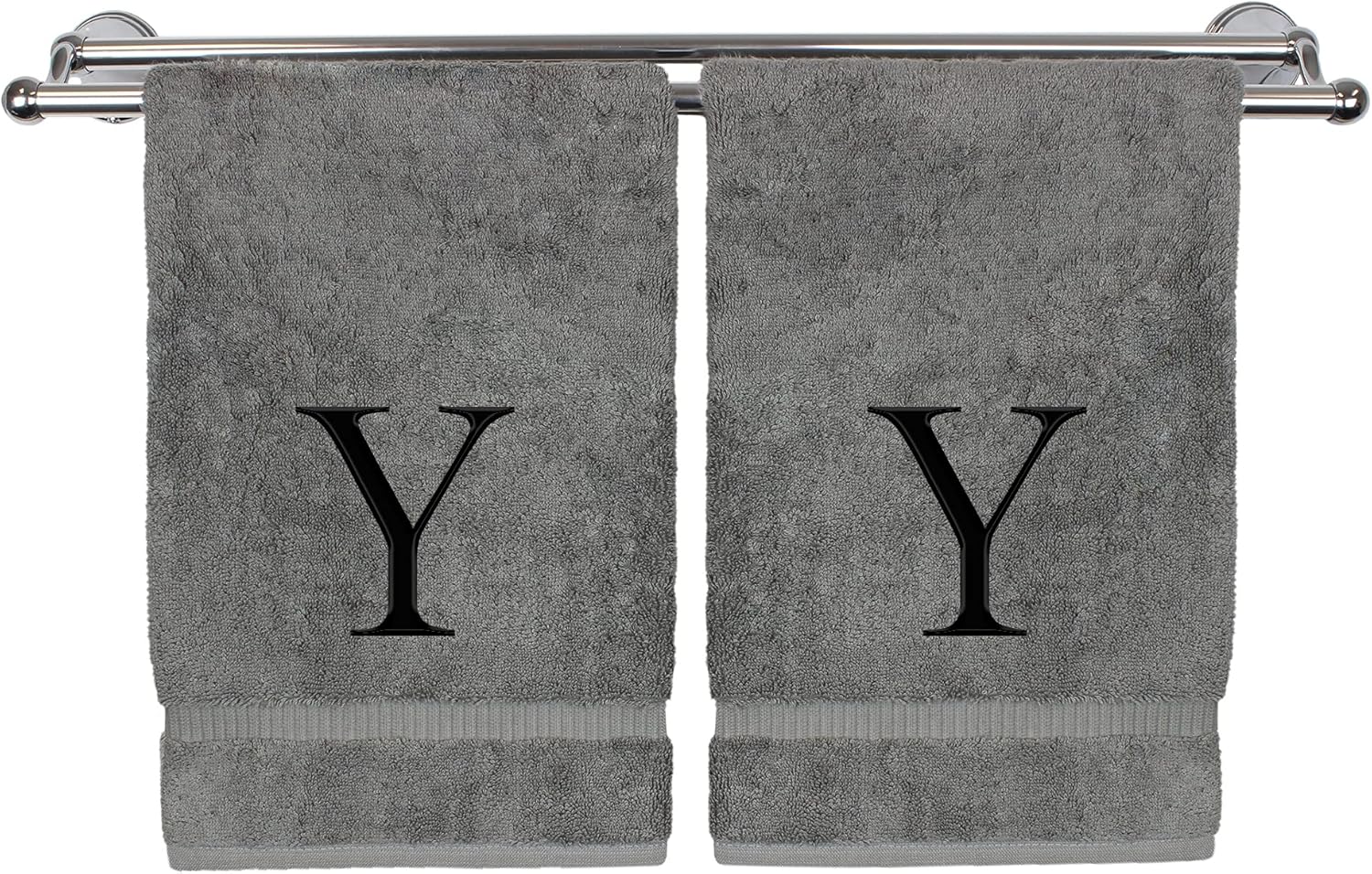Monogrammed Hand Towel, Personalized Gift, Set of 2- Black Block Letter Embroidered Towel - Extra Absorbent 100% Turkish Cotton - Soft Terry Finish - Initial Y Gray