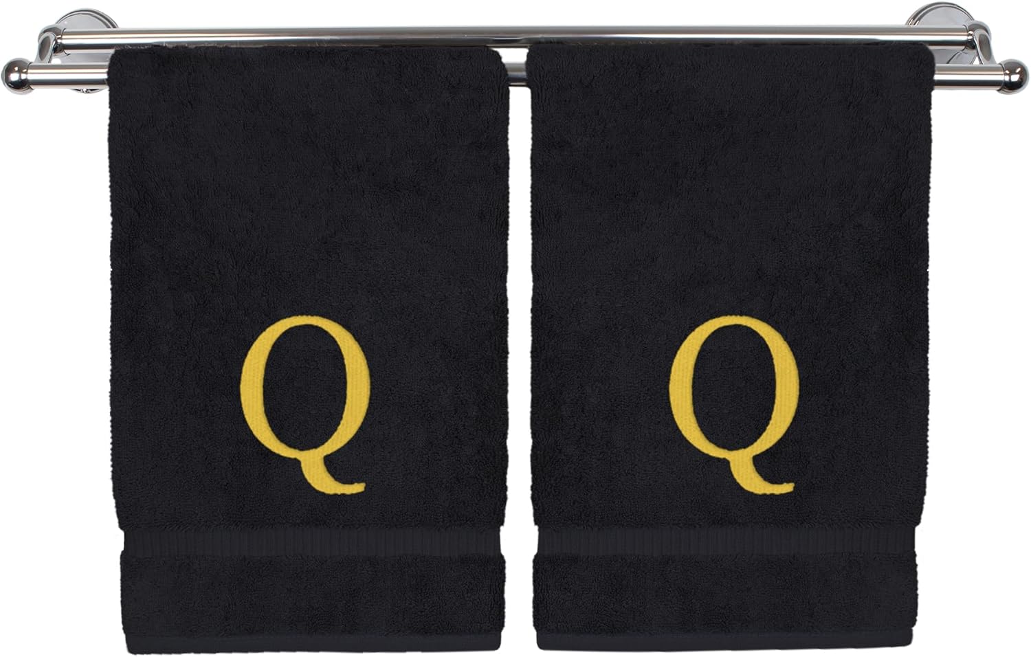 Monogrammed Hand Towel, Personalized Gift, Set of 2- Gold Block Letter Embroidered Towel - Extra Absorbent 100% Turkish Cotton - Soft Terry Finish - Initial Q Black