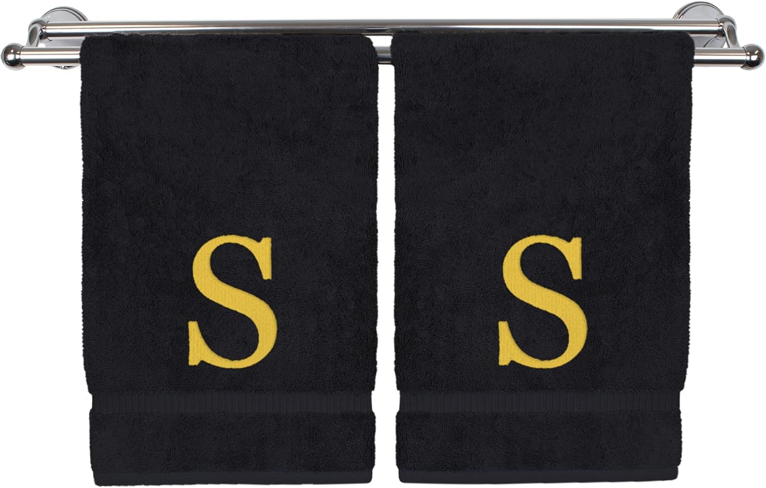Monogrammed Hand Towel, Personalized Gift, Set of 2- Gold Block Letter Embroidered Towel - Extra Absorbent 100% Turkish Cotton - Soft Terry Finish - Initial S Black
