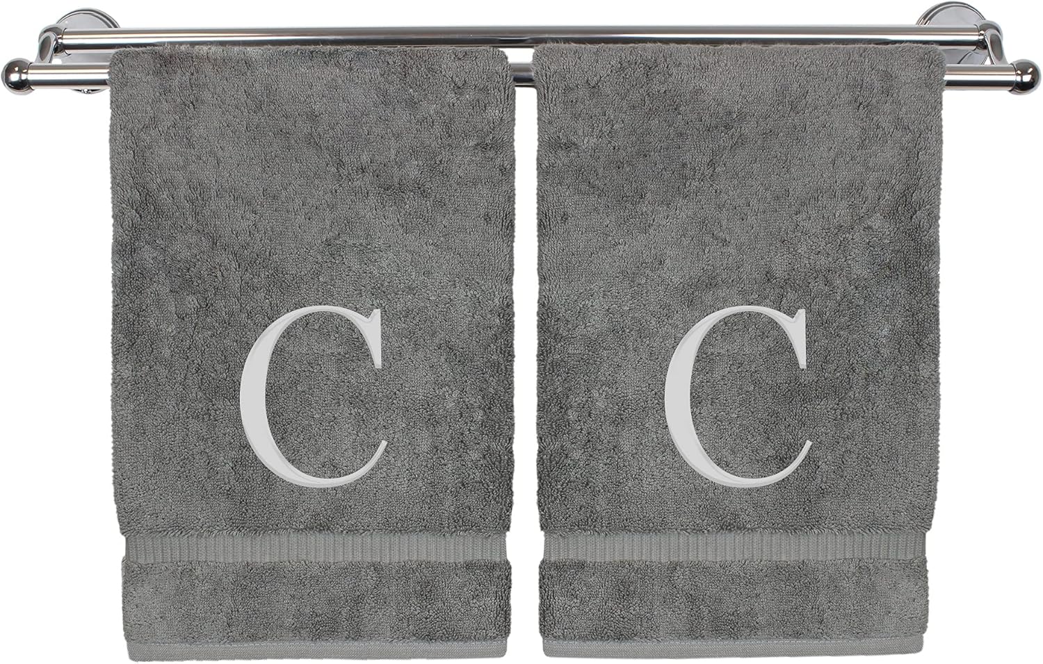 Monogrammed Hand Towel, Personalized Gift, Set of 2- Silver Block Letter Embroidered Towel - Extra Absorbent 100% Turkish Cotton - Soft Terry Finish - Initial C Gray