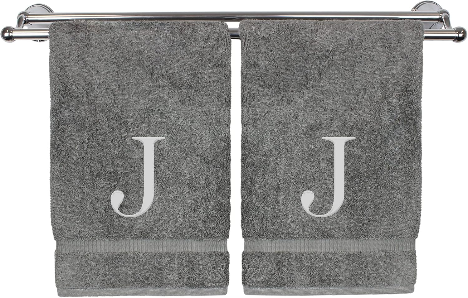 Monogrammed Hand Towel, Personalized Gift, Set of 2- Silver Block Letter Embroidered Towel - Extra Absorbent 100% Turkish Cotton - Soft Terry Finish - Initial J Gray