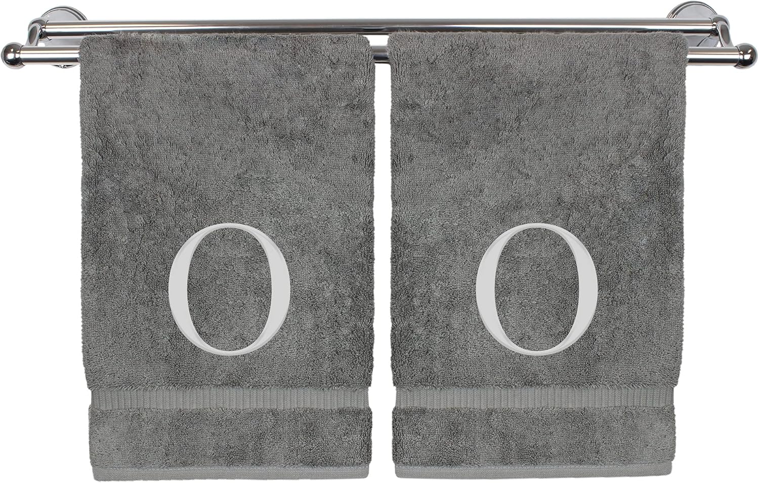 Monogrammed Hand Towel, Personalized Gift, Set of 2- Silver Block Letter Embroidered Towel - Extra Absorbent 100% Turkish Cotton - Soft Terry Finish - Initial O Gray