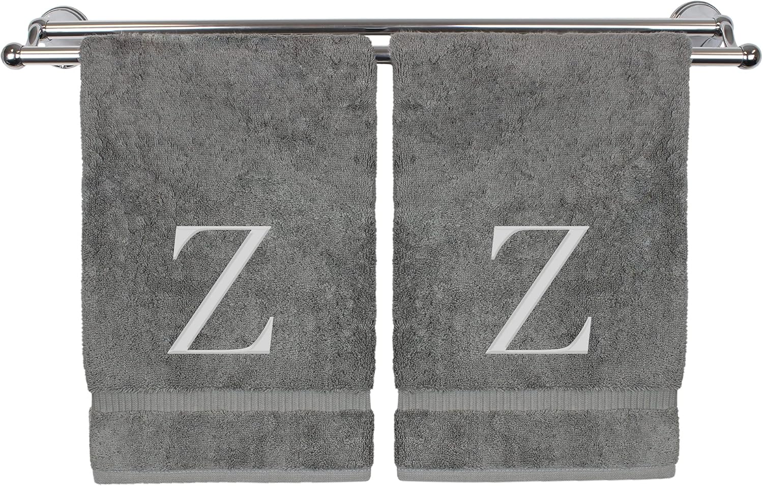 Monogrammed Hand Towel, Personalized Gift, Set of 2- Silver Block Letter Embroidered Towel - Extra Absorbent 100% Turkish Cotton - Soft Terry Finish - Initial Z Gray