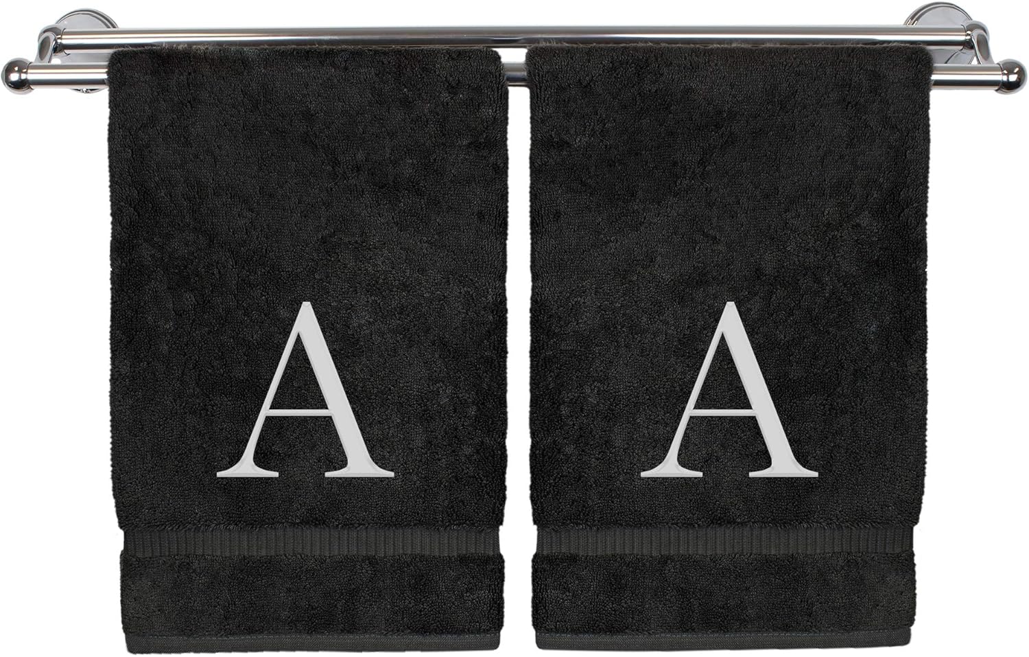 Monogrammed Hand Towel, Personalized Gift, Set of 2- White Block Letter Embroidered Towel - Extra Absorbent 100% Turkish Cotton - Soft Terry Finish - Initial A Black