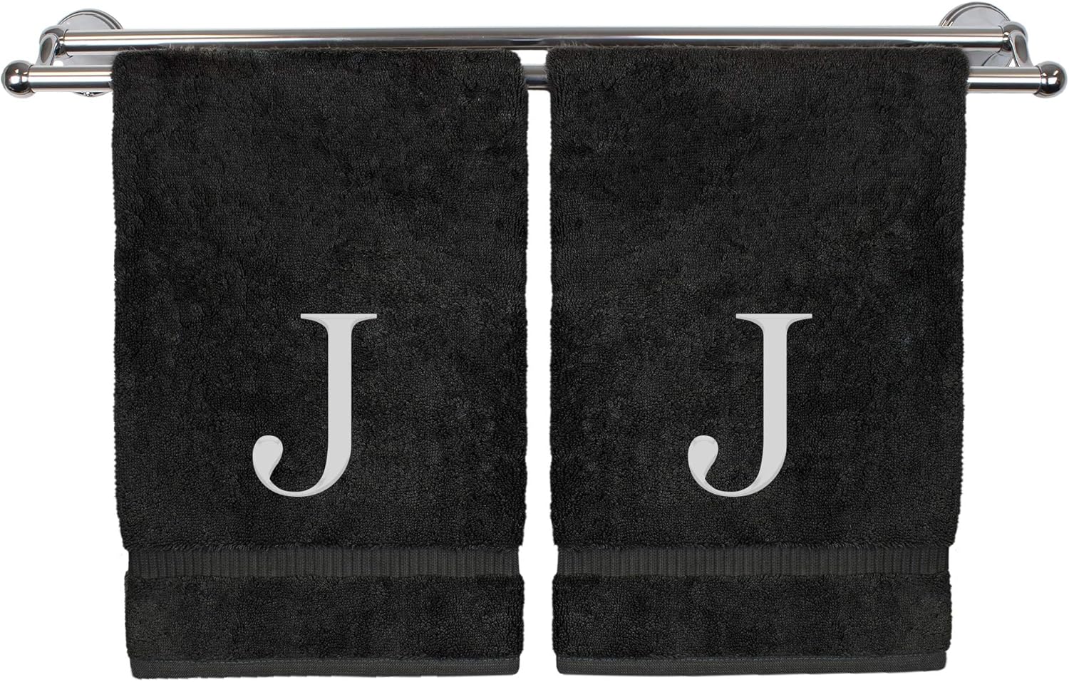 Monogrammed Hand Towel, Personalized Gift, Set of 2- White Block Letter Embroidered Towel - Extra Absorbent 100% Turkish Cotton - Soft Terry Finish - Initial J Black