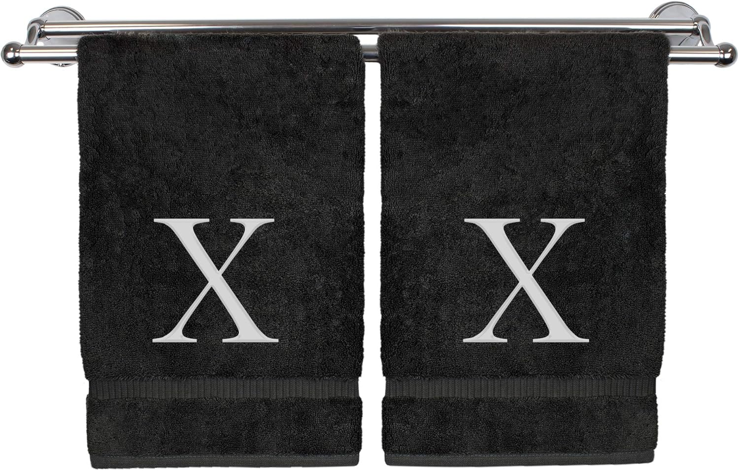 Monogrammed Hand Towel, Personalized Gift, Set of 2- White Block Letter Embroidered Towel - Extra Absorbent 100% Turkish Cotton - Soft Terry Finish - Initial X Black