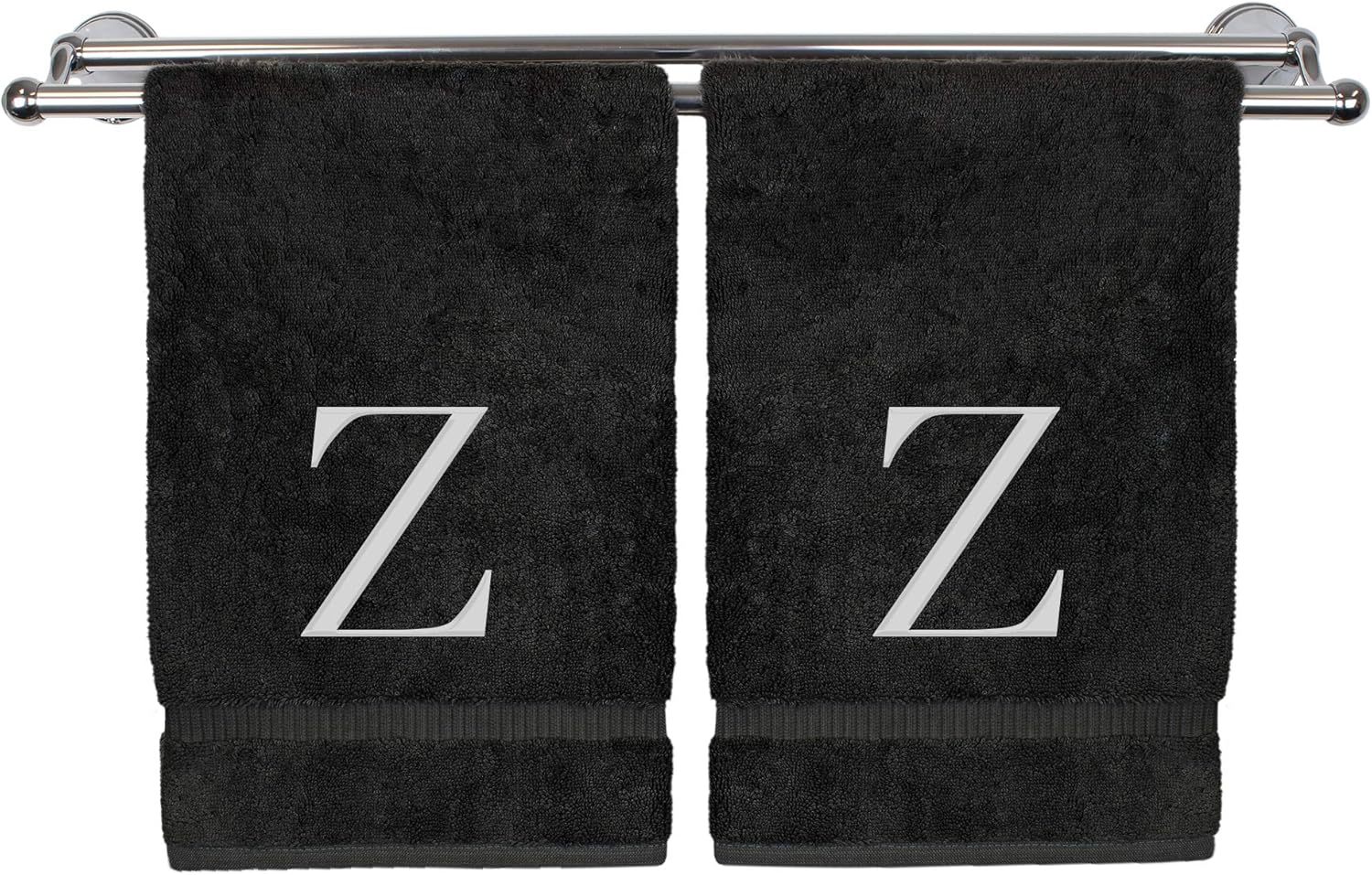 Monogrammed Hand Towel, Personalized Gift, Set of 2- White Block Letter Embroidered Towel - Extra Absorbent 100% Turkish Cotton - Soft Terry Finish - Initial Z Black