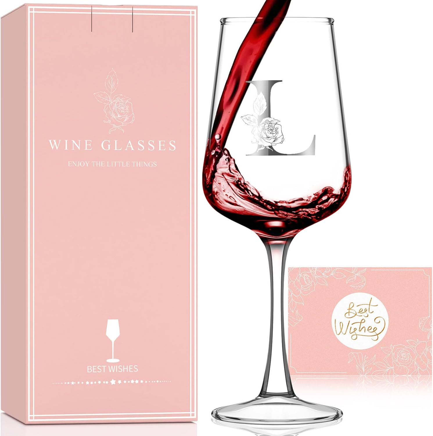 Monogrammed Wine Glass Gifts for Women - Personalized A-Z Wine Glasses with Gift Box & Greeting Card | Custom Mothers day, Anniversary, Birthday Gifts for Her, Mom, Wife, Best Friend, Sister,Woman (L)