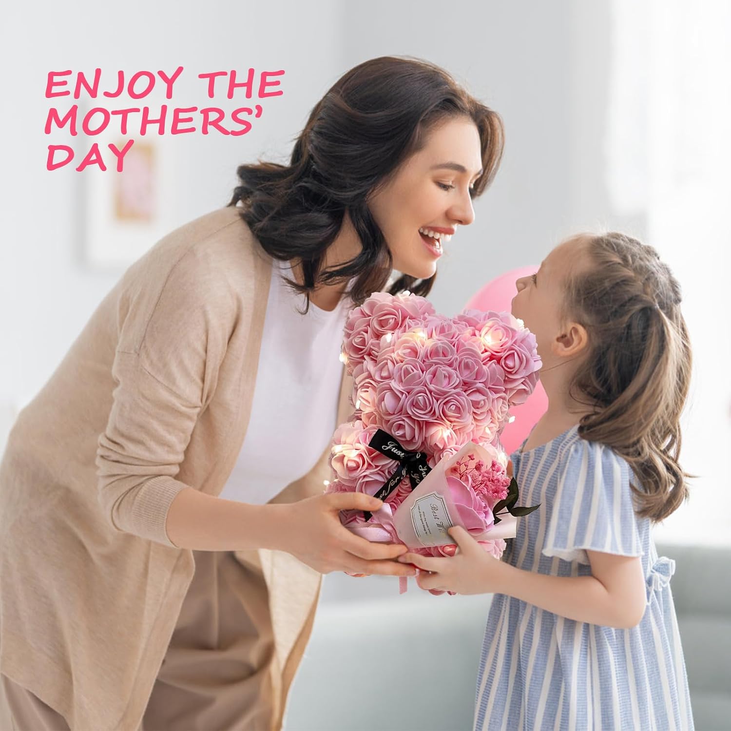Mothers' Day Gift For Mom Grandma Pink Rose Flower Teddy Bear Blind Box Pearl Necklace For Valentine’s day Birthday Holiday Gifts For Her, Wife Girlfriend Women Gift Wedding Anniversary Home Decor