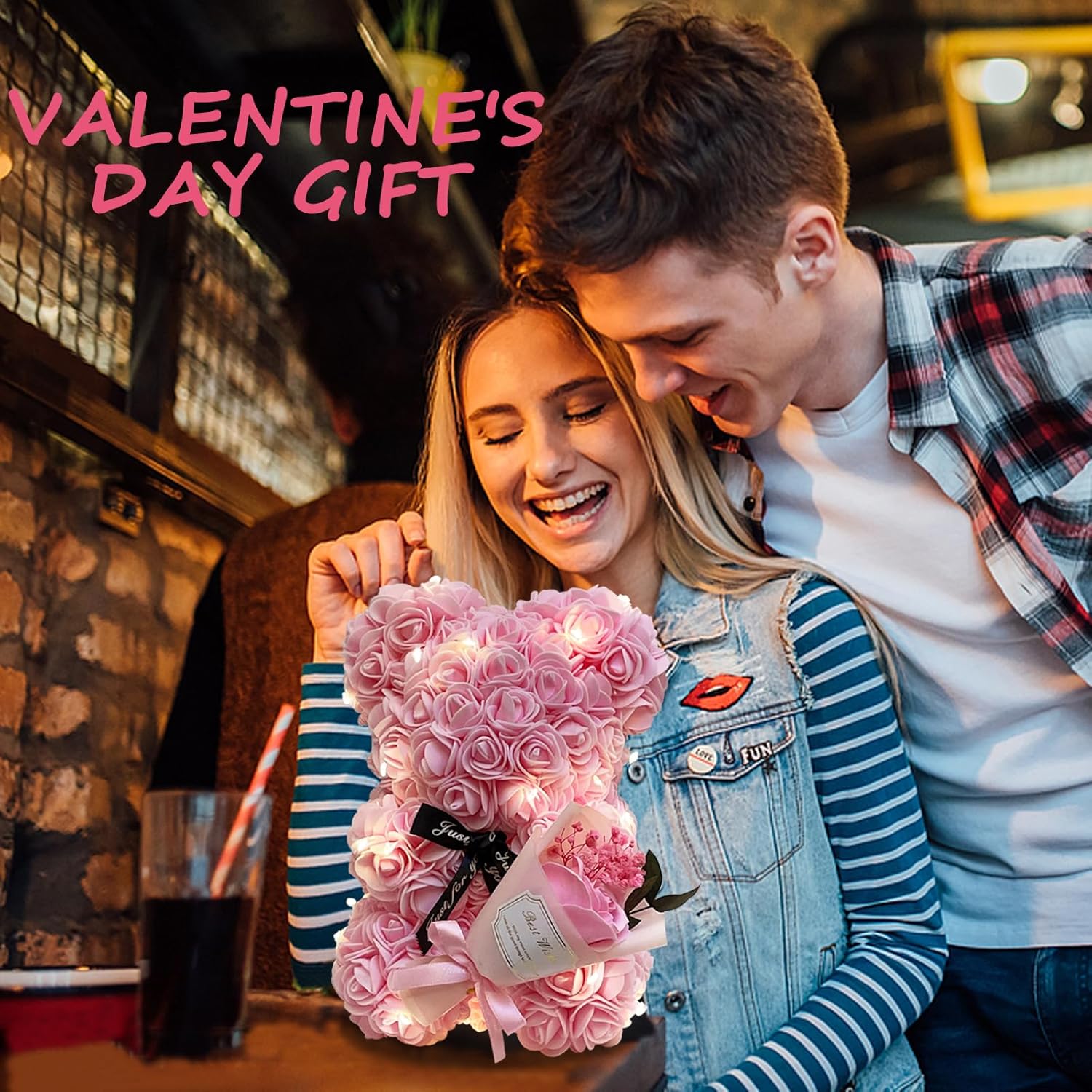 》Are you looking for gift for her? Here is perfect gift has a sense of ritual including Rose Teddy bear with lights and a pearl necklace mystery box. Each rose flower bear is a handmade combination of artificial roses that made by polyester and a foam bear. So you will get the unique one which is different from others. Give her a gift the unique Rose Bear Blind Box Pearl Necklace to show your sincerity and full love.