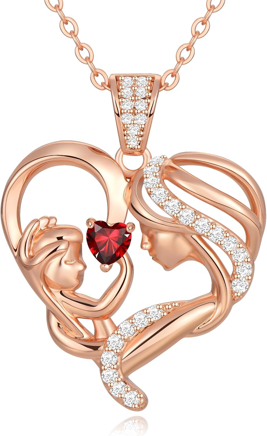 Mothers Day Gifts for Mom Wife Her Grandma, S925 Sterling Silver Birthstone Necklaces Jewelry for Women, Mother's Day Love Heart Pendant Necklace for Anniversary Birthday Christmas Day