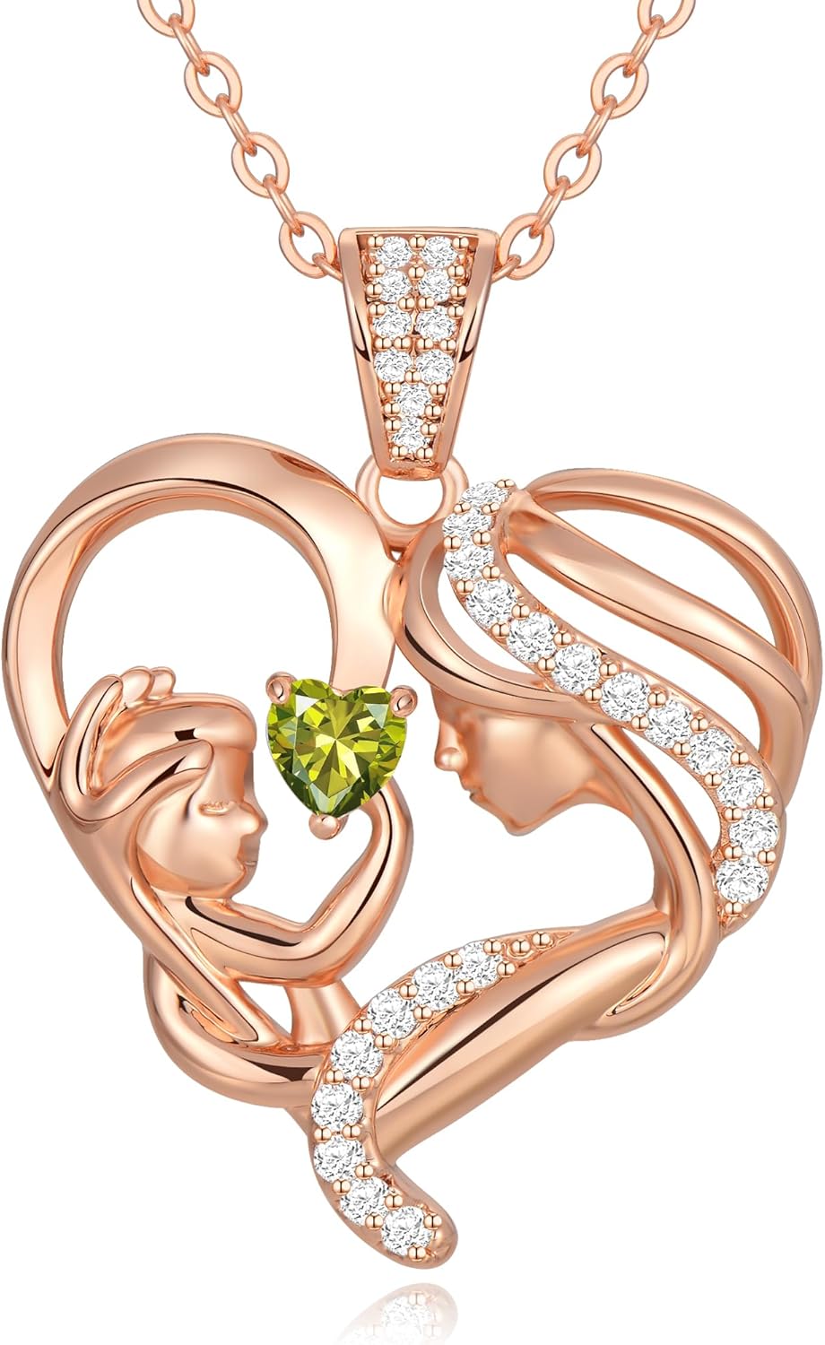 Mothers Day Gifts for Mom Wife Her Grandma, S925 Sterling Silver Birthstone Necklaces Jewelry for Women, Mother's Day Love Heart Pendant Necklace for Anniversary Birthday Christmas Day