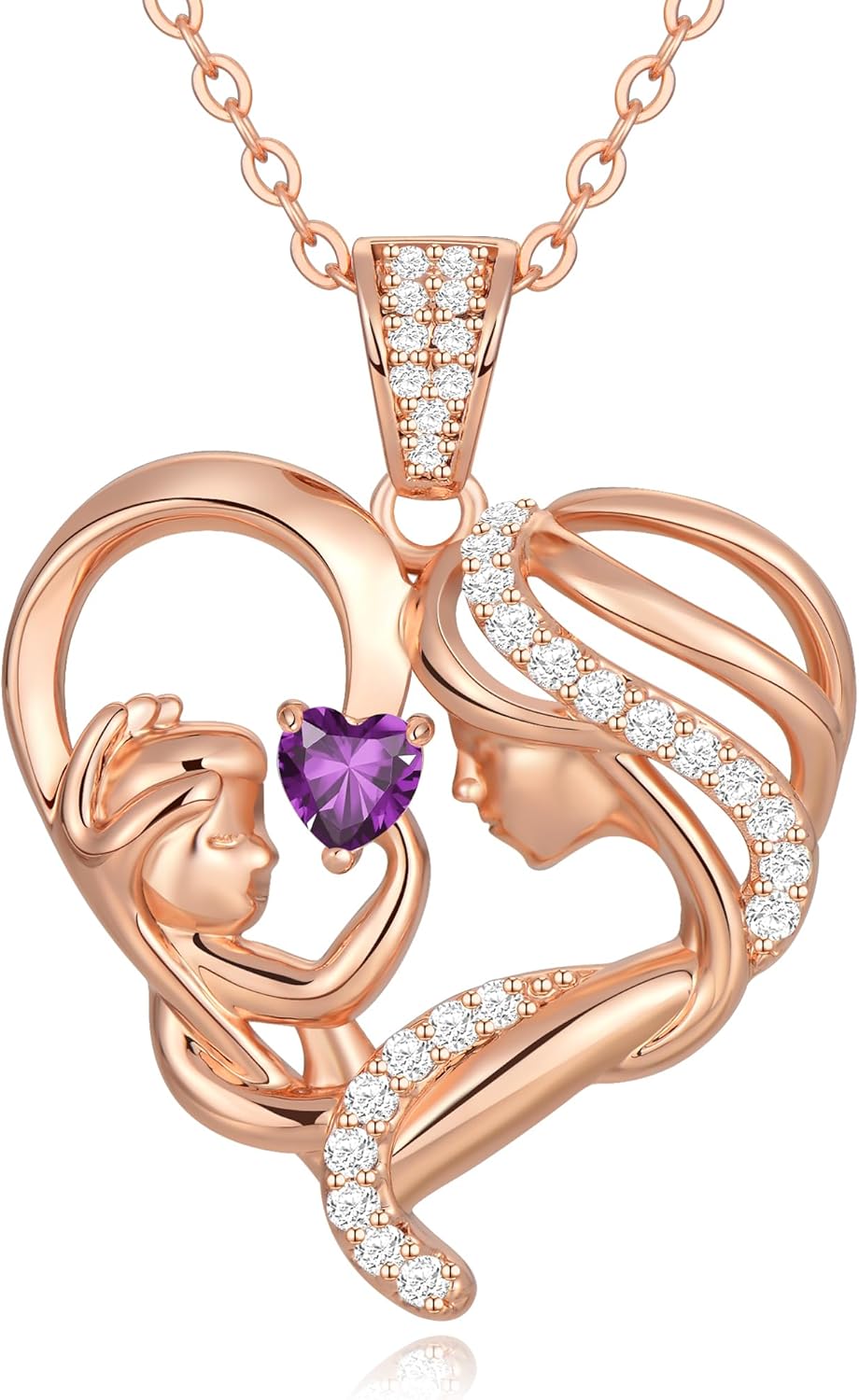 Mothers Day Gifts for Mom Wife Her Grandma, S925 Sterling Silver Birthstone Necklaces Jewelry for Women, Mother's Day Love Heart Pendant Necklace for Anniversary Birthday Christmas Day
