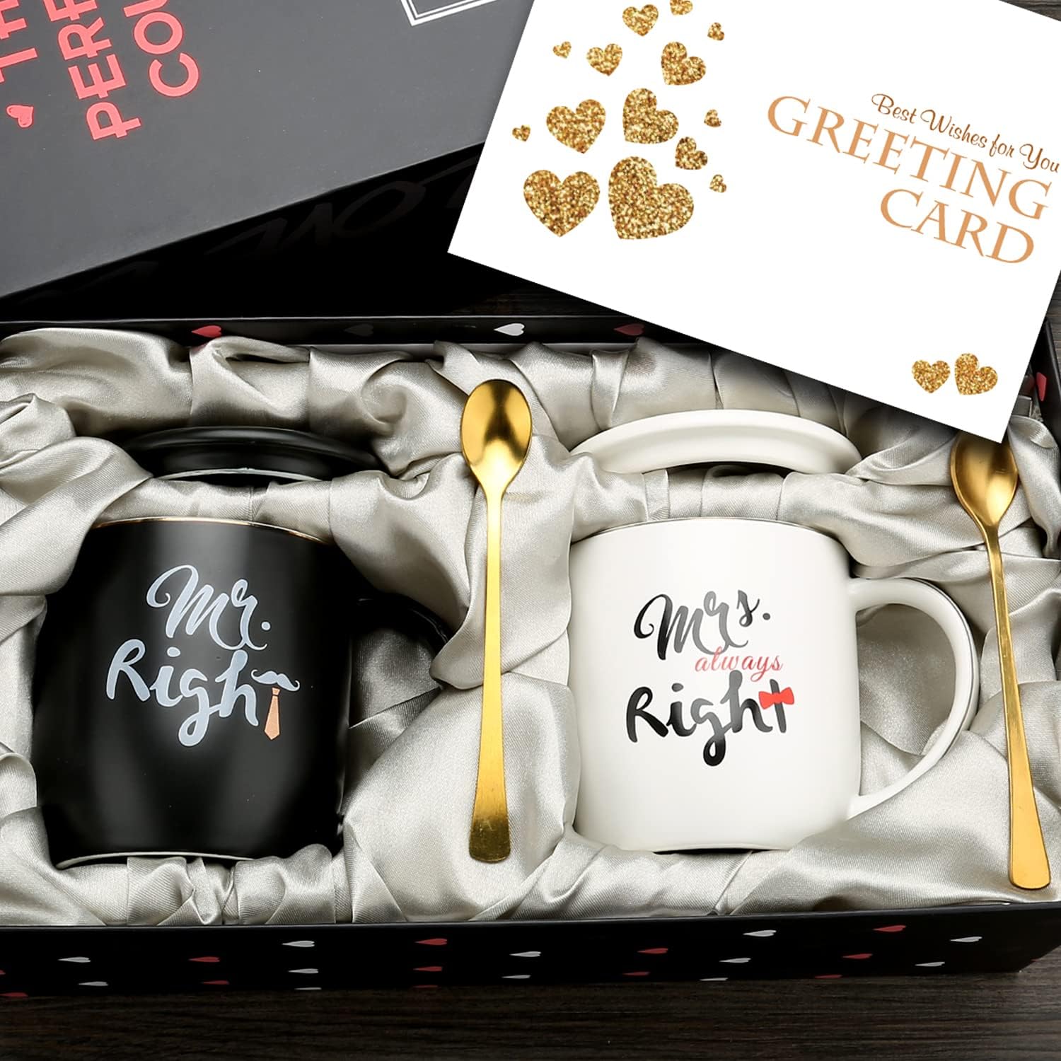 Mr Right Mrs Always Right Couple Coffee Mugs Cups - Bridal Shower Wedding Anniversary Valentine's Day Gift - Bride and Groom Newlyweds Married Couples Ceramic Marble Mugs Set - Black and White