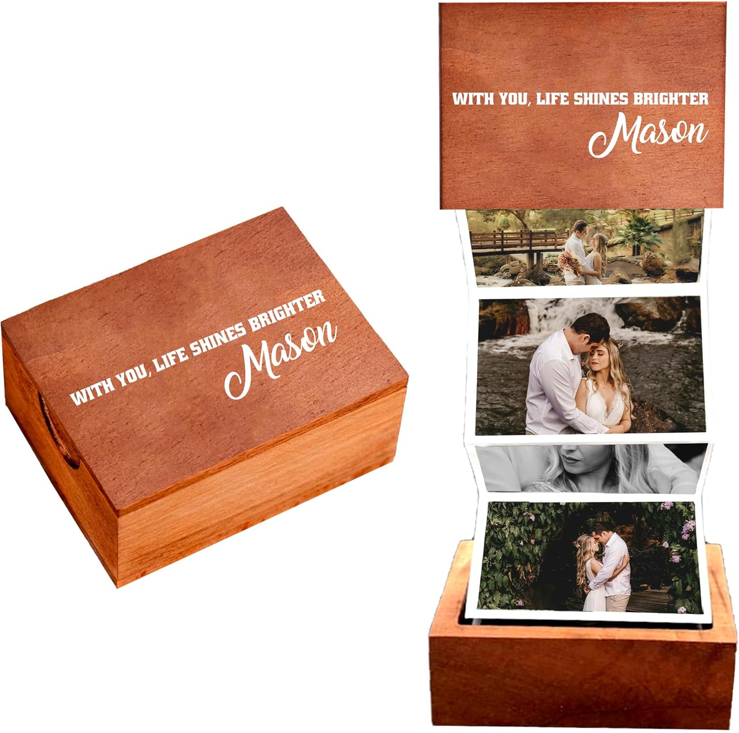 Noni Custom Pull Out Photo Album for Couple, Personalized Photo Box, Couple Gifts, Gift For Him And Her Valentine, Sentimental Gift Wife Husband, Outline, Anniversary, Numeral Date, Style 2