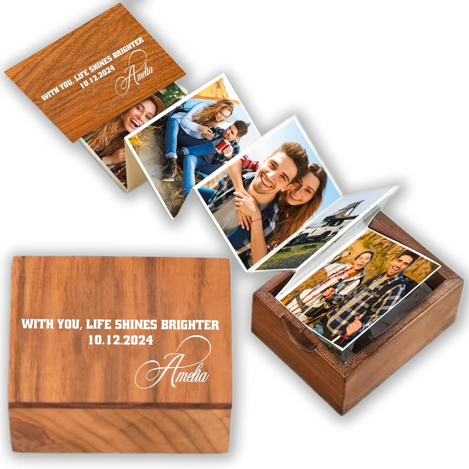 Noni Custom Pull Out Photo Album for Couple, Personalized Photo Box, Couple Gifts, Gift For Him And Her Valentine, Sentimental Gift Wife Husband, Outline, Anniversary, Numeral Date, Style 3