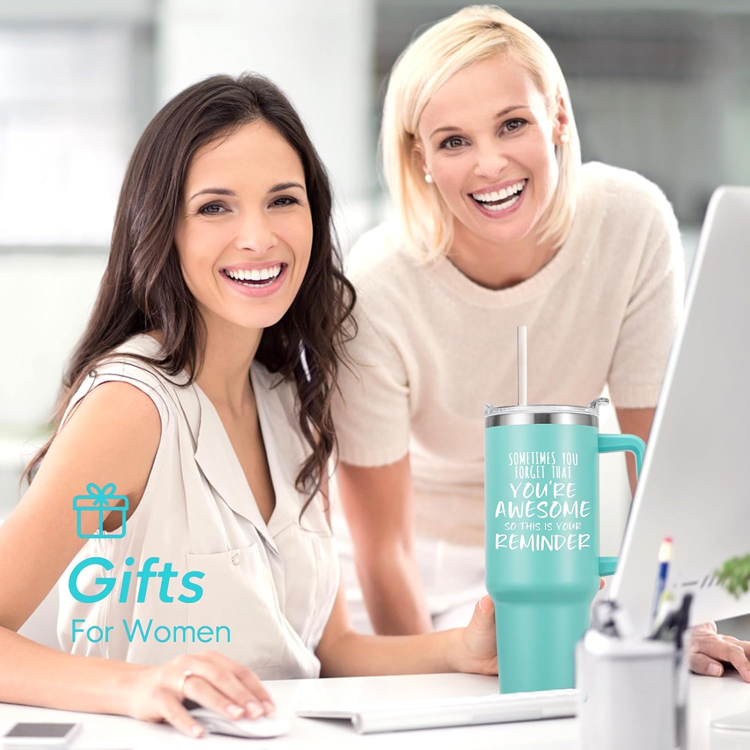 NOWWISH Gifts for Women, Birthday Inspirational Thank You GIfts for Women Mom Wife with this Funny Tumbler, 40 oz Tumbler with Handle and Straw - Green
