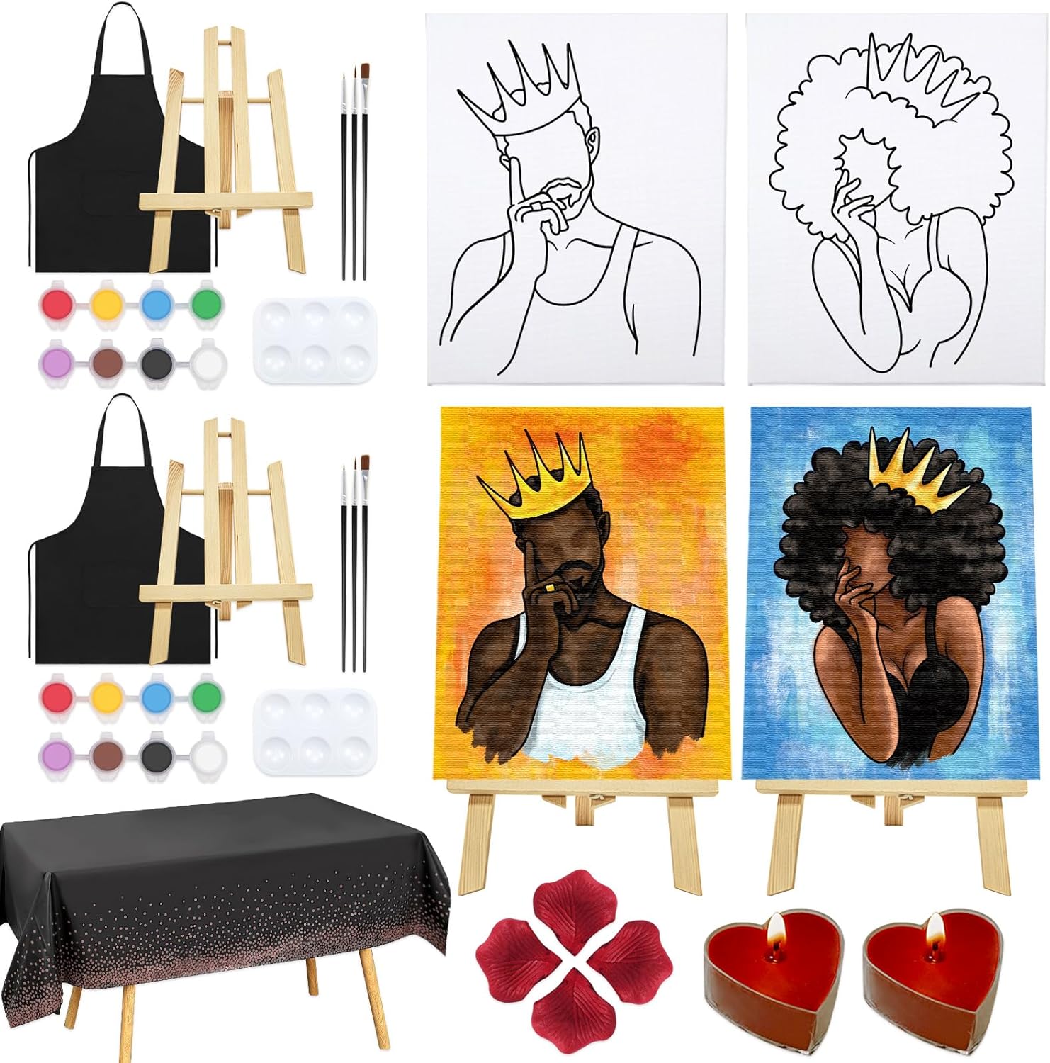 Nuberlic Date Night Painting Kit for Couples Sip and Paint Kit for Adults Couples Pre Drawn Canvas to Paint for Adults Afro King Queen Valentines 2 Pack 8" X 10"