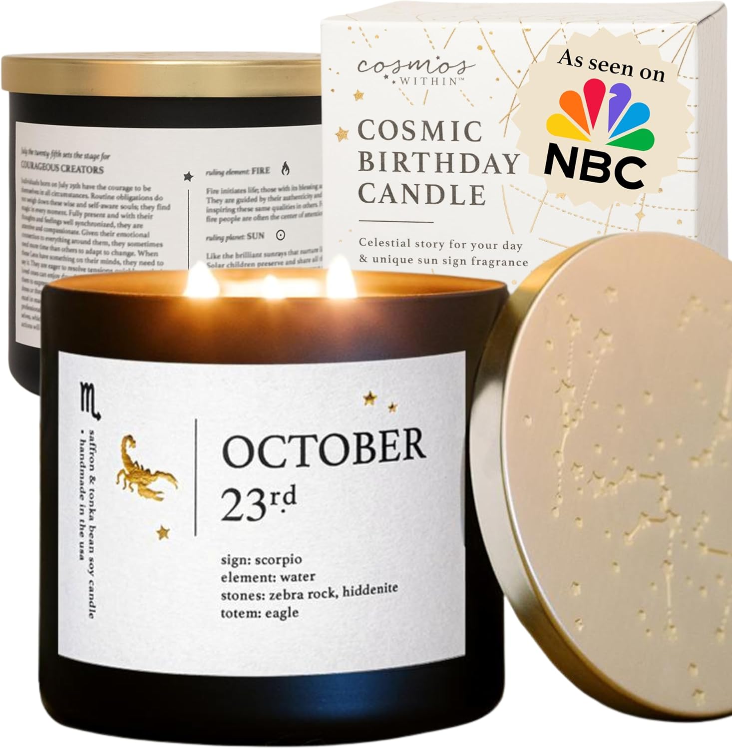 October 23rd Personalized Zodiac Candle | Inspirational Astrology Reading and Daily Affirmation for Your Birthdate | Handmade Scorpio Candles | Astrology Birthday Gifts for Women