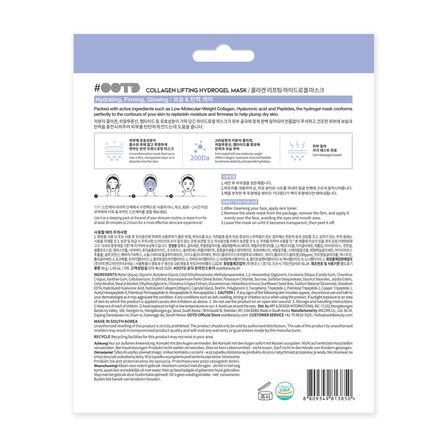 [#OOTD Collagen Lifting Hydrogel Mask – 5pcs] Experience an ultra-hydrating and skin-firming mask in a luxurious hydrogel format. Designed to support skin elasticity, moisture, and a smooth, revitalized appearance.