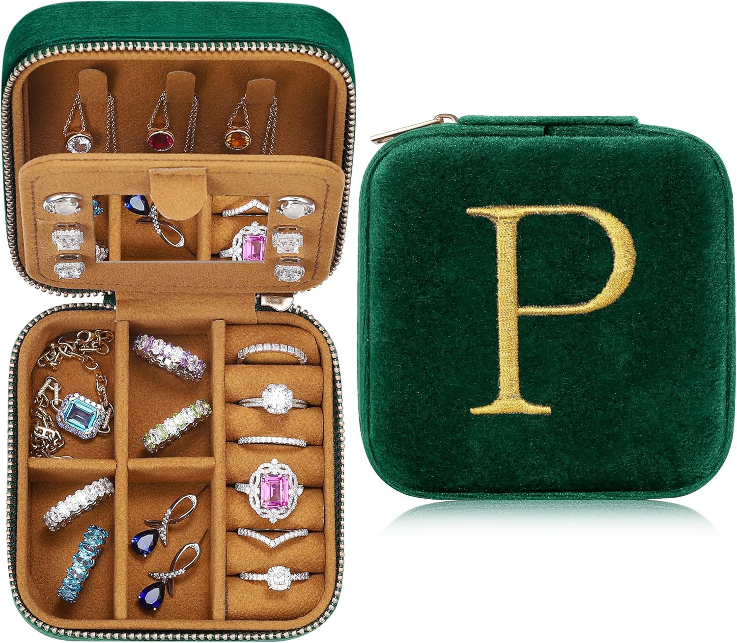 Parima Gifts for Coworkers - Small Funny Gifts for Coworkers Female, Coworkers Gift Ideas, Thank You Appreciation Gifts for Coworkers Pink Travel Jewelry Case Jewelry Box - Letter P, Green