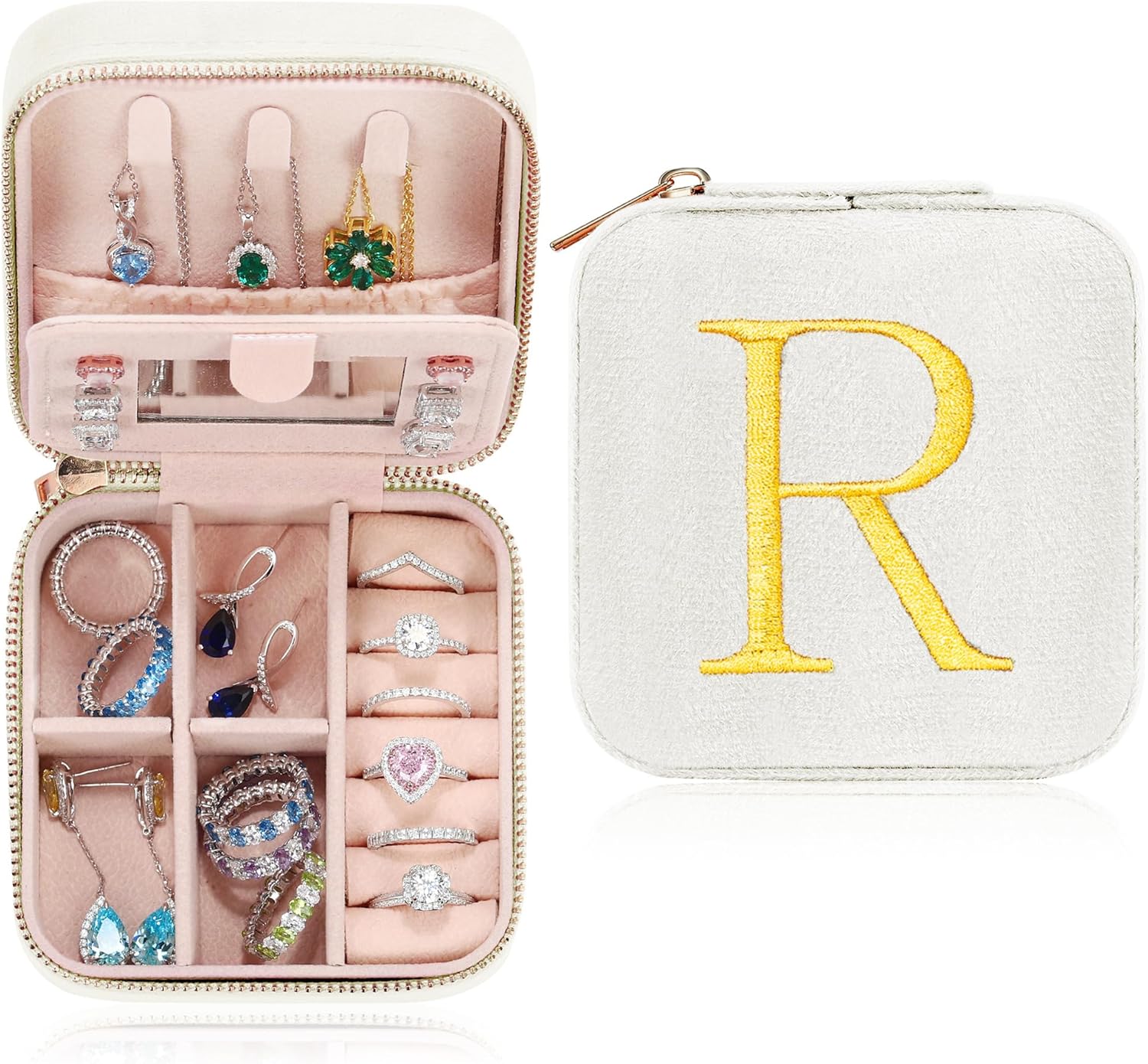 Parima Plush Velvet Travel Jewelry Case Jewelry Box - Personalized Portable Small White Jewelry Boxes Jewelry Organizer for Women Birthday Gifts for Women Jewelry Case Monogrammed - Letter R, White