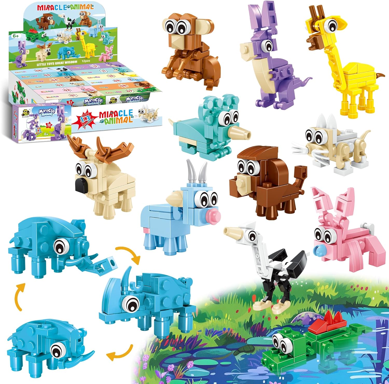 Party Favors for Kids - 12 Pack 36 Kinds of Animals Building Block Toy Stocking Stuffers Classroom Prizes Goodie Bags Easter Gifts Building Set, Christmas Birthday Gift for Boys Girls Ages 6-12+