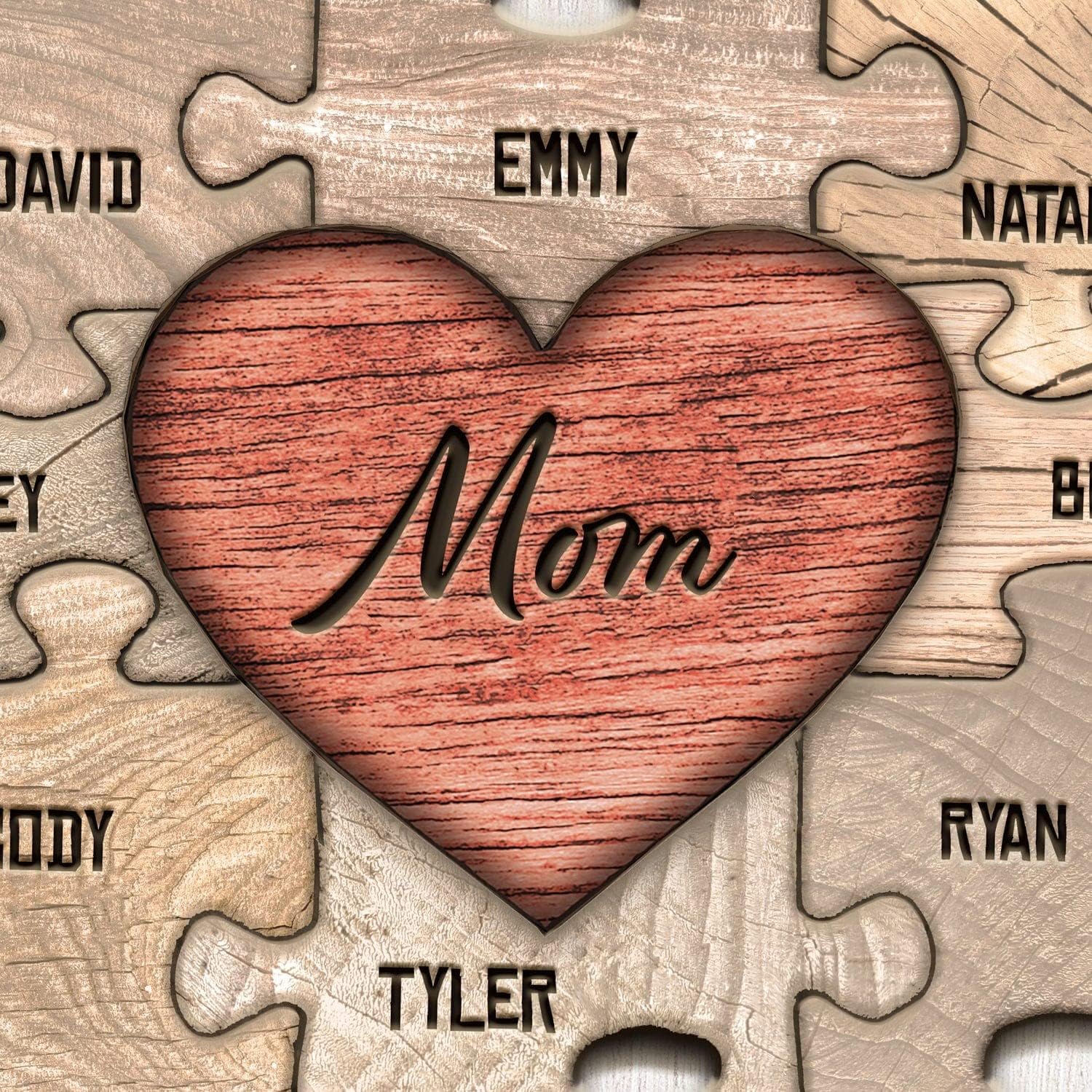 Personal-Prints MOM & Children Personalized HEART Puzzle Wall Art | Unique Customized with up to 8 Names | Mother’s Day, Birthday or Christmas Gift (8"x10" Easel Backed Canvas, 5 Children)