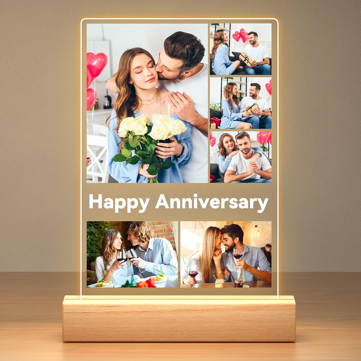 Personalized Anniversary Couple Gifts for Women Men, Custom Collage Picture Frames with Photos, Customized Photo Frame with Night Light, Personalized Birthday Gifts for Her Him Boyfriend Girlfriend