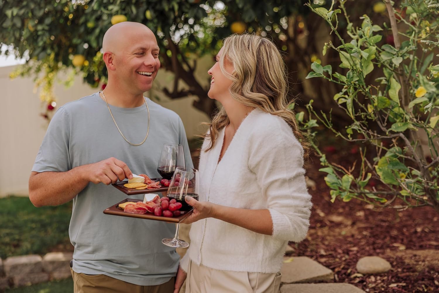 CHEESE BOARD STEADY - Made of stylish wood, each plate with wine holder features a built-in ridge around the perimeter to help stabilize your small bites
