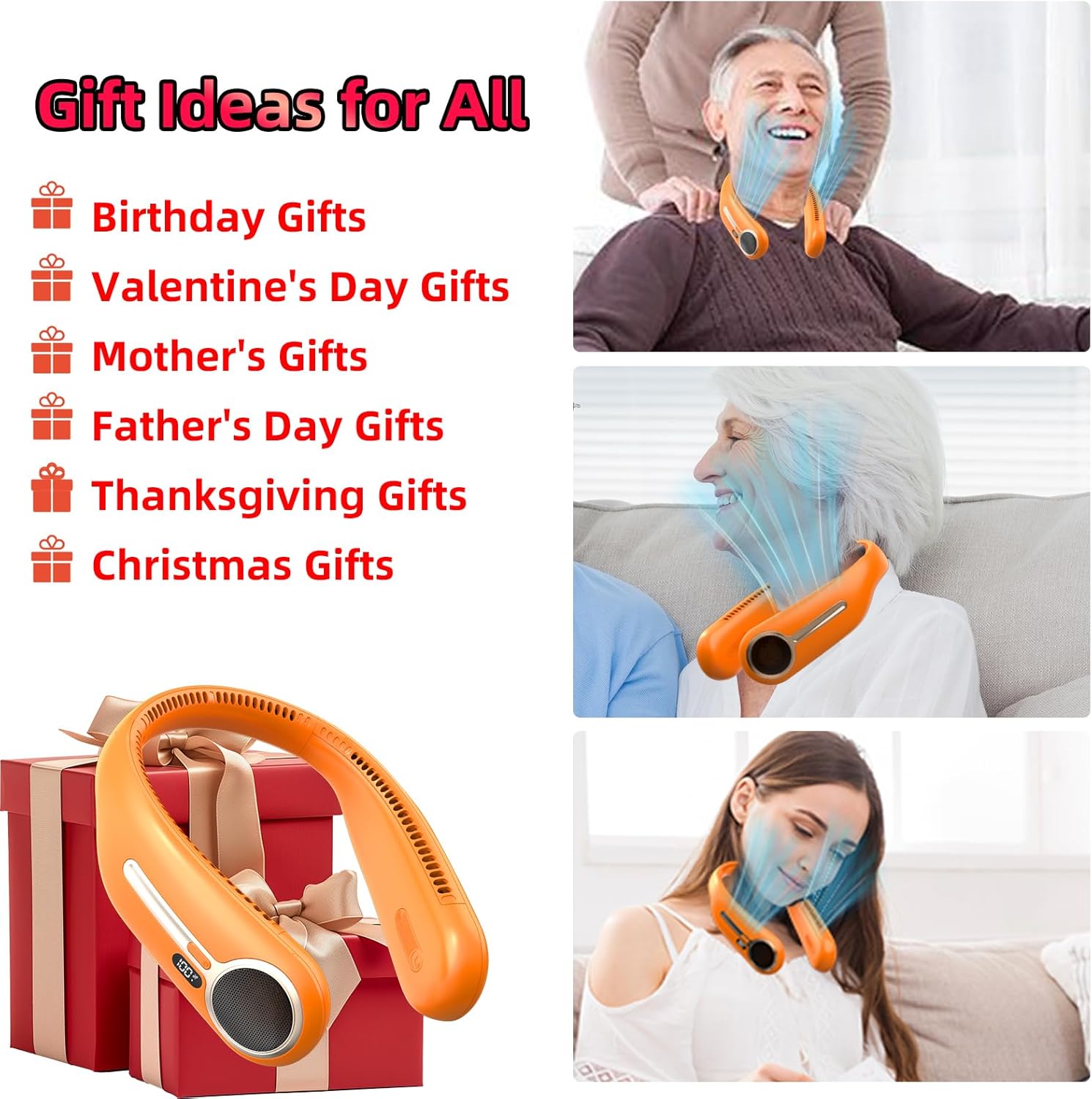 Portable Neck Fan,Gift Ideas,Personal Wearable Bladeless Fan,360° Cooling,LED Display,4-Speeds,6000mAh Rechargeable,Powerful Wind,Outdoor Travel Camping,Birthday Gifts for Men Women Dad Mom (Orange)
