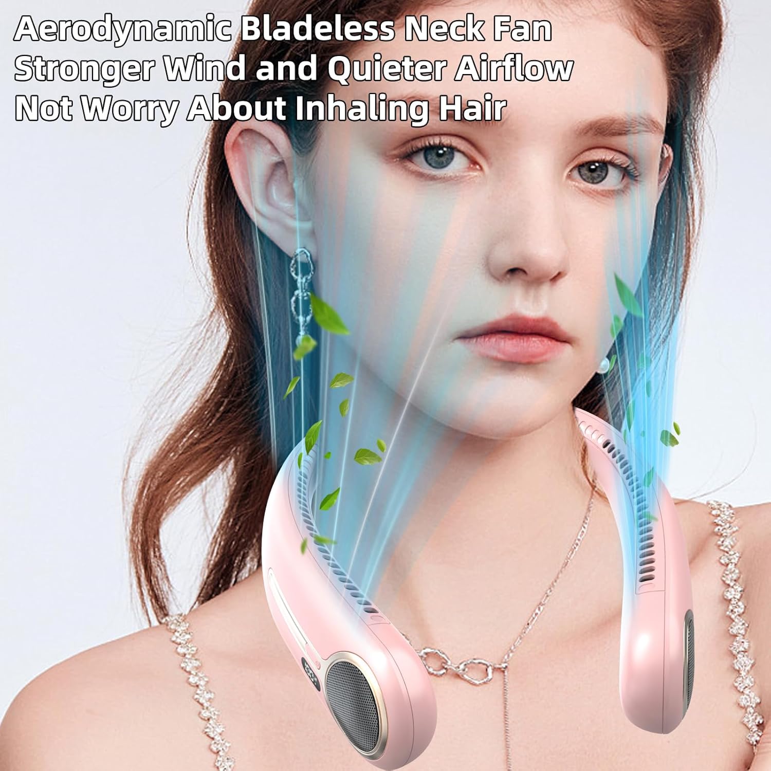 Portable Neck Fan,Gift Ideas,Personal Wearable Bladeless Fan,360° Cooling,LED Display,4-Speeds,6000mAh Rechargeable,Powerful Wind,Outdoor Travel Camping,Birthday Gifts for Men Women Dad Mom (Pink)
