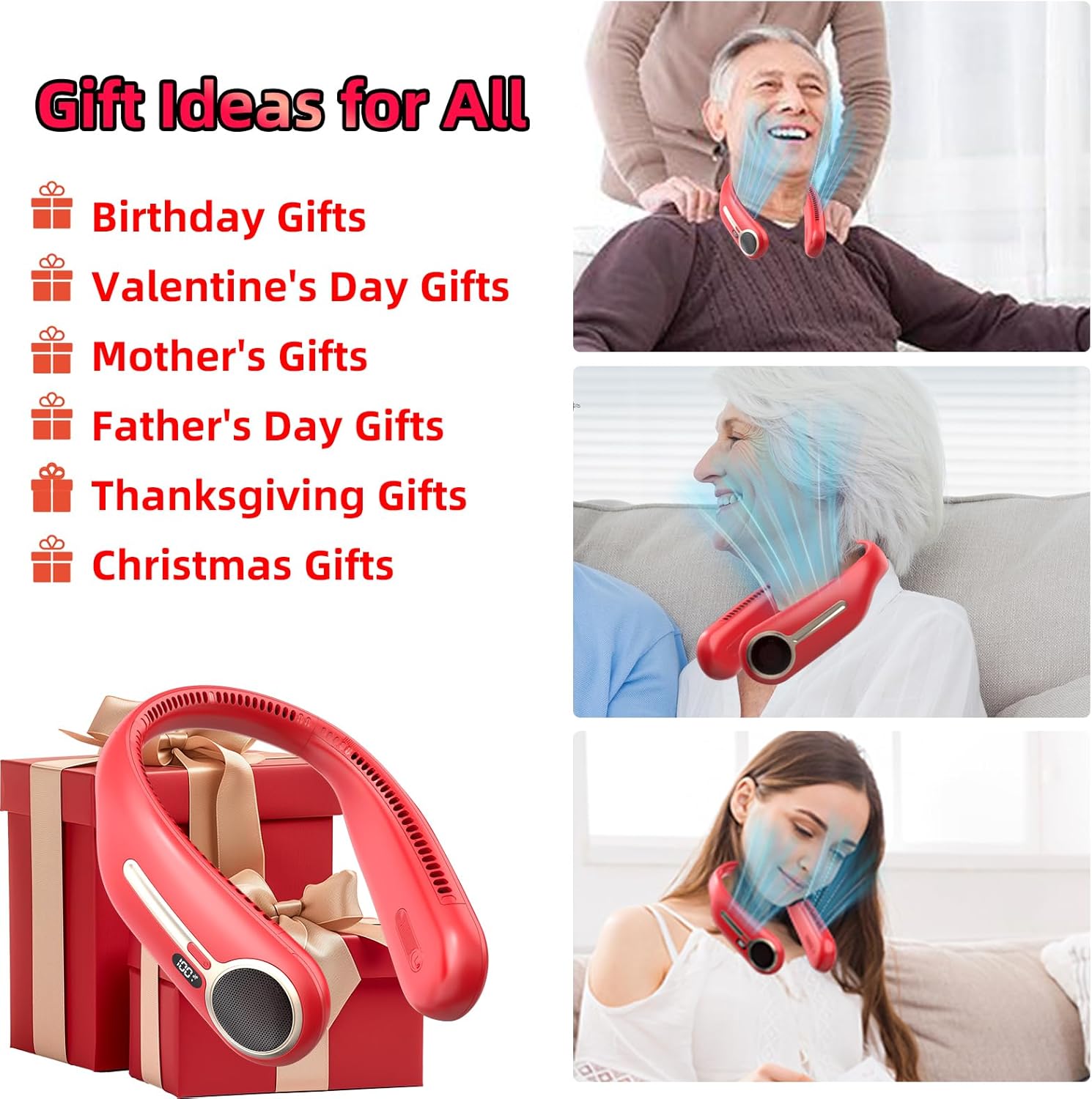 Portable Neck Fan,Gift Ideas,Personal Wearable Bladeless Fan,360° Cooling,LED Display,4-Speeds,6000mAh Rechargeable,Powerful Wind,Outdoor Travel Camping,Birthday Gifts for Men Women Dad Mom (Red)
