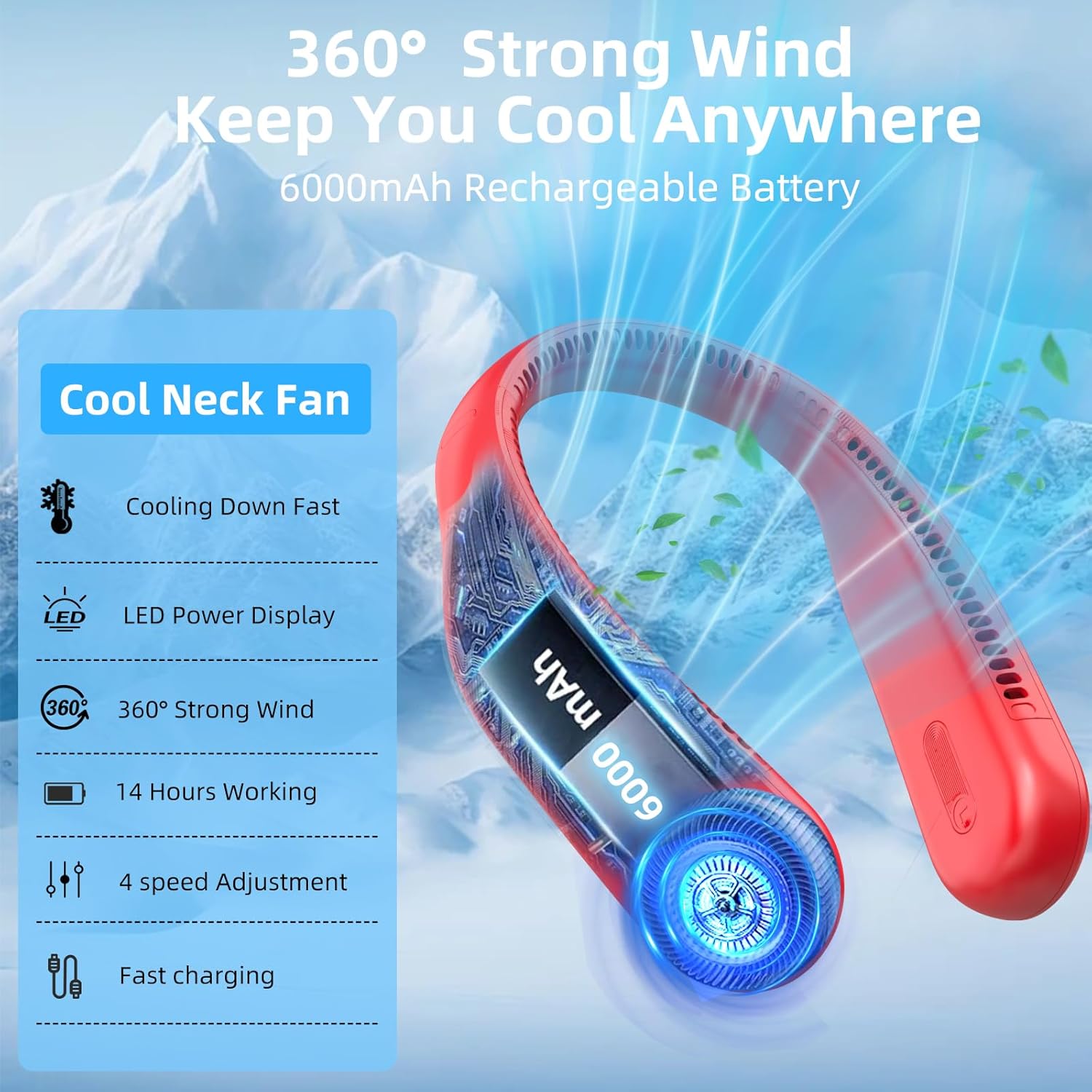 【Upgraded Cooling Performance】: Our neck fan has two high-power motor, delivering a 360° powerful airflow that cools your neck and face instantly. The upgraded air volume is 150% stronger, ensuring rapid cooling even in extreme heat.