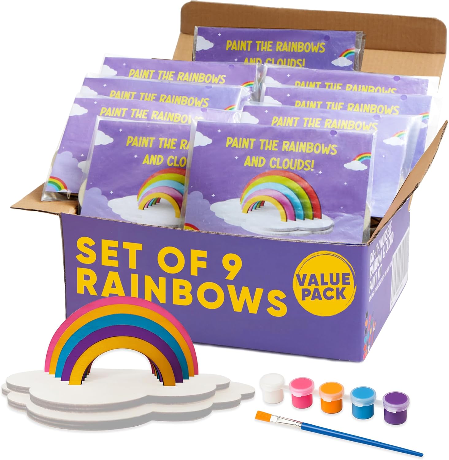 Rainbow Painting Set for Kids 9 Pcs - Bulk Stockings & Birthday Goodie Bag Stuffer - Kids Party Favors Toy Return Gifts - Pinata Stuffers - Classroom Treasure Box Carnival Prizes