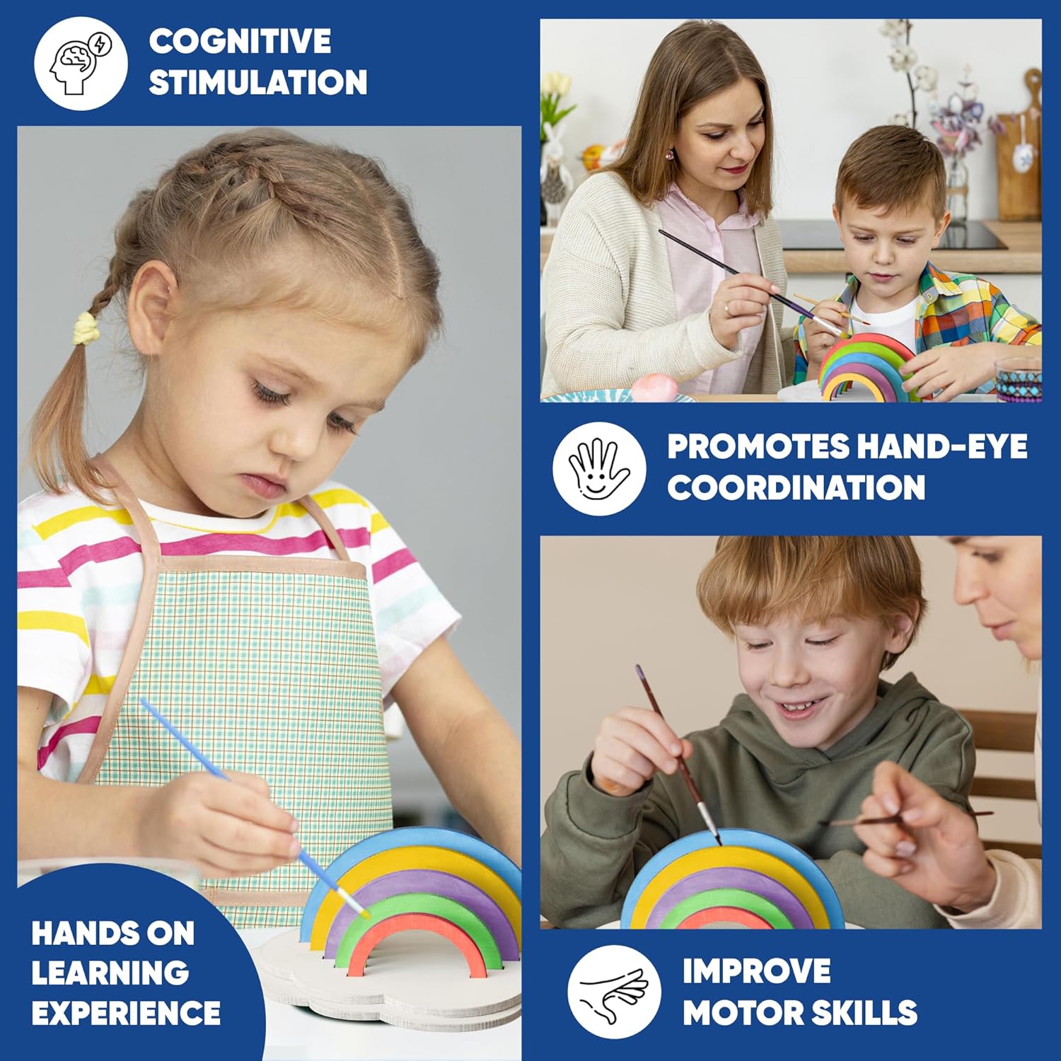 High Quality Materials - The rainbow sets are made from solid wooden board & the non-toxic paint are safe for children. This party gifts meets US toy standards and safety tests approved. These DIY wooden rainbows are perfect party favors for kids 4-8