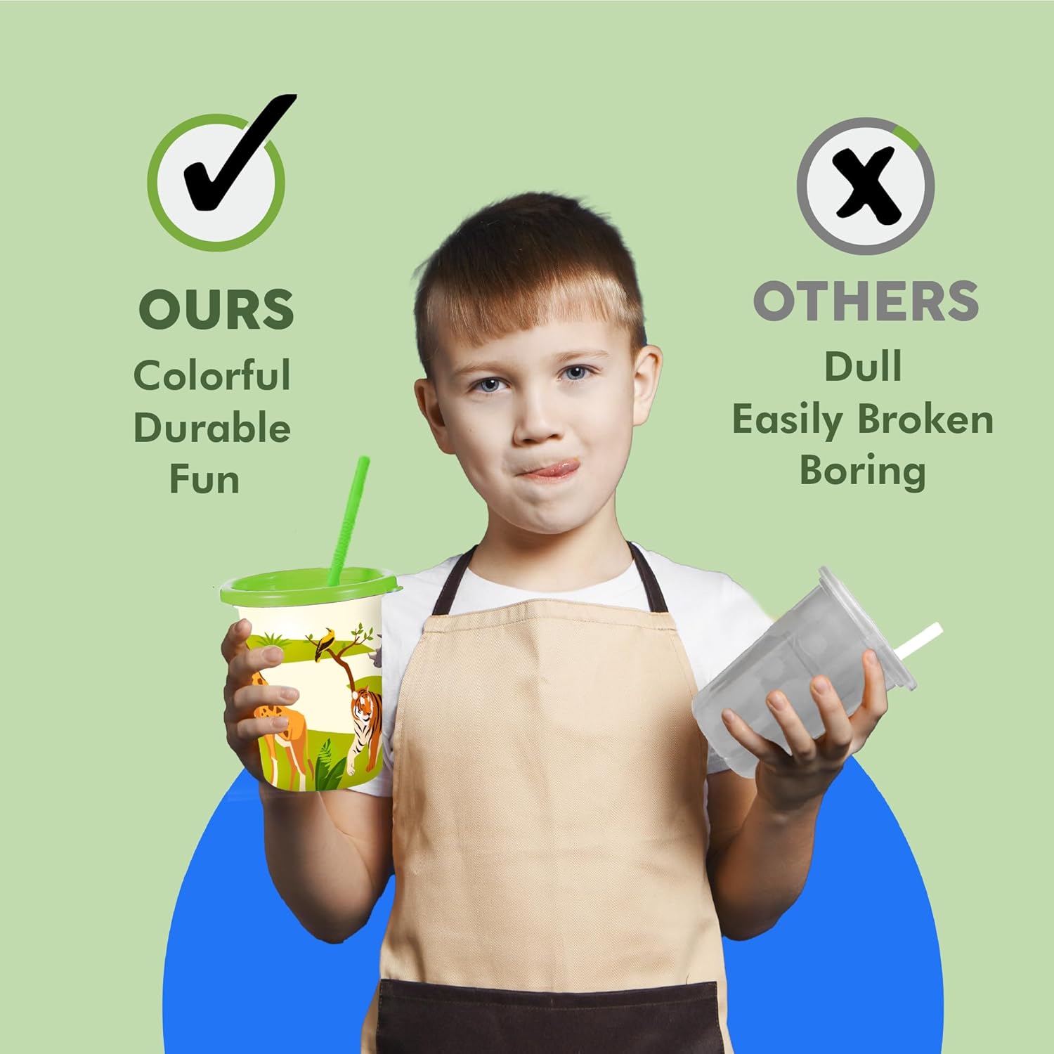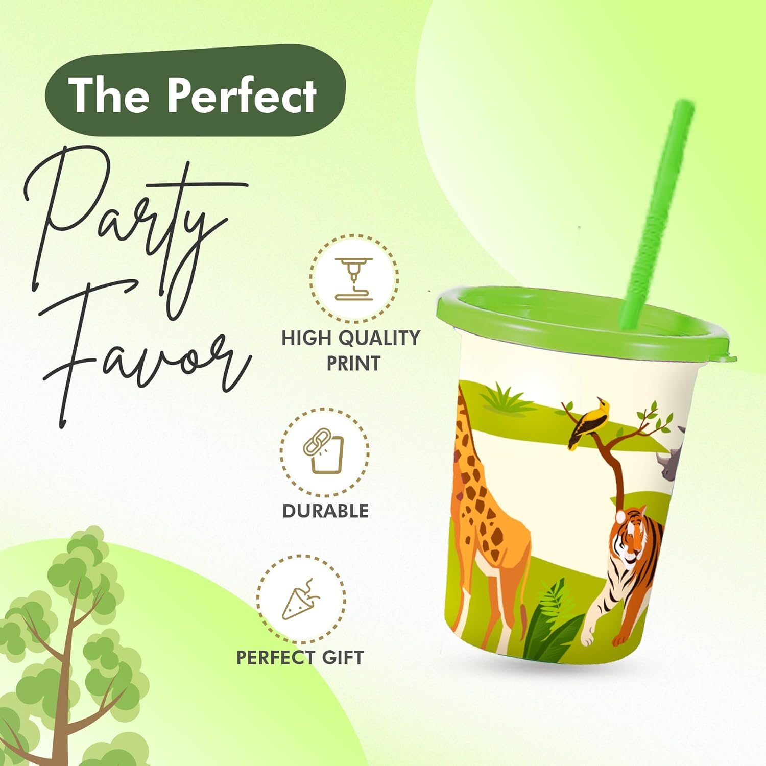 SPILL-RESISTANT WITH LIDS & STRAWS – LESS MESS, MORE FUN - Designed for party excitement, these 12 oz safari cups come with secure lids and straws to help prevent spills. Perfect for keeping drinks contained while kids enjoy the celebration!