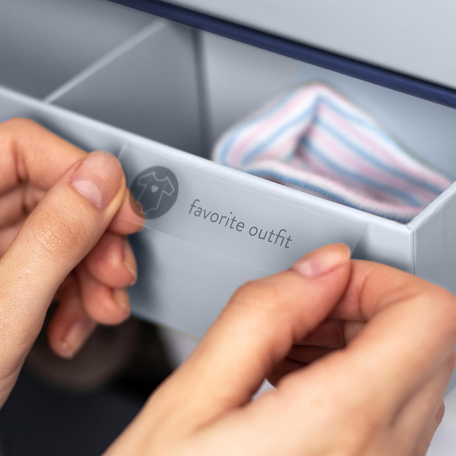 The memory box opens to reveal folders, cubbies and drawers to keep your memories. Over 50 individually-illustrated Individual labels show you what to save and where to find it.