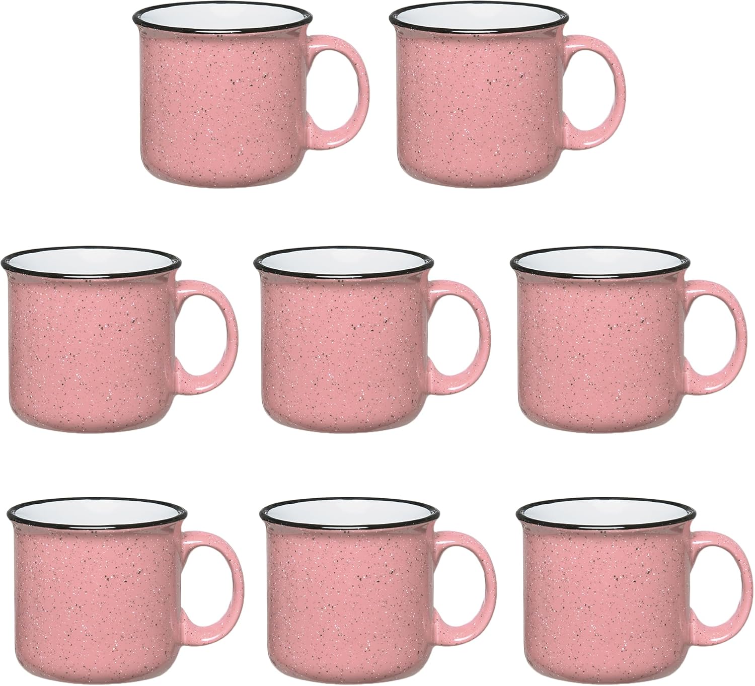 Set of 8 Ceramic Campfire Mugs – 15 Oz, Pink – Coffee & Tea Cups for Home, Work, Travel, Camping – Customizable, Great for DIY, Events, Companies