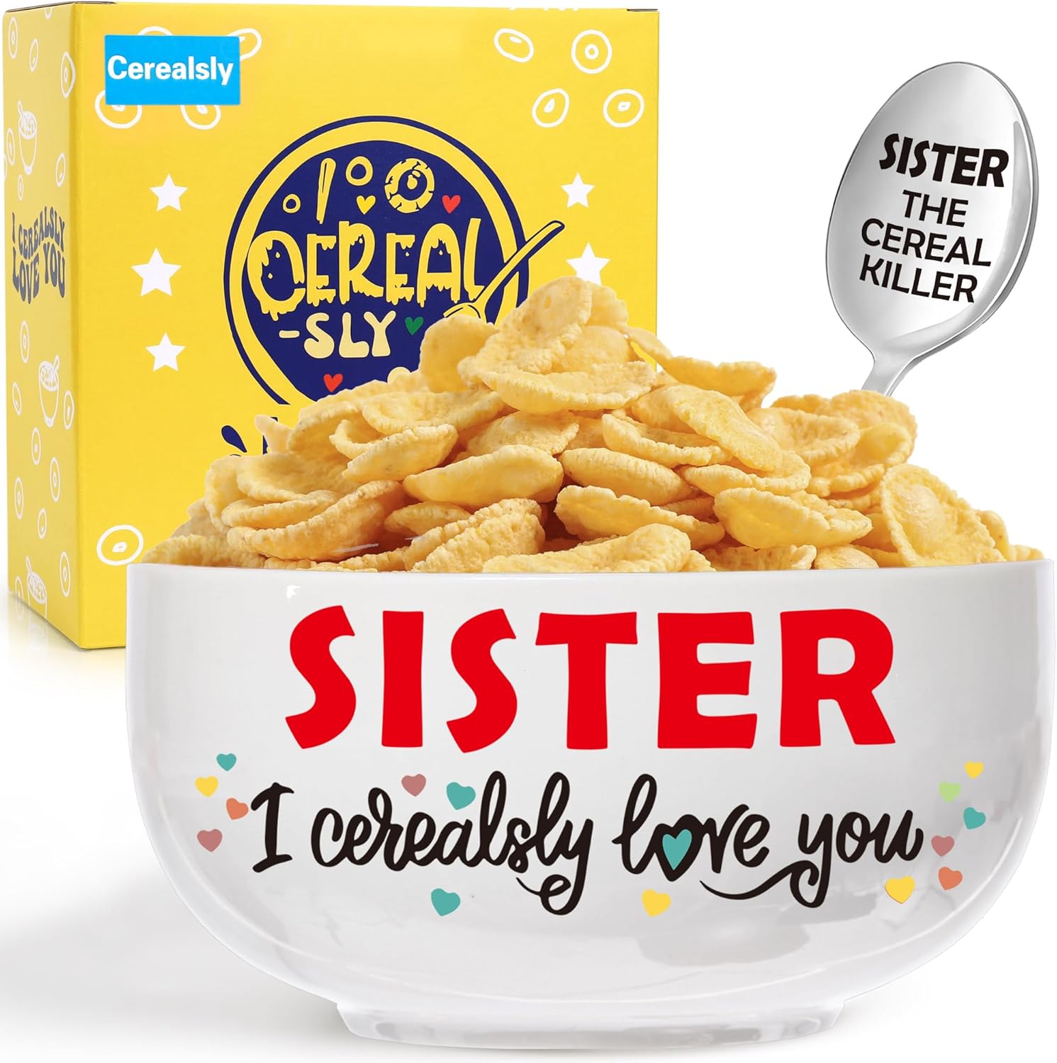 Sister Birthday Gifts from Sisters, I Cerealsly Love You, Perfect Graduation Christmas Gift for Big Little Sisters Sis from Brother, Best Sister Ever Gifts, Cereal Bowl Presents Box