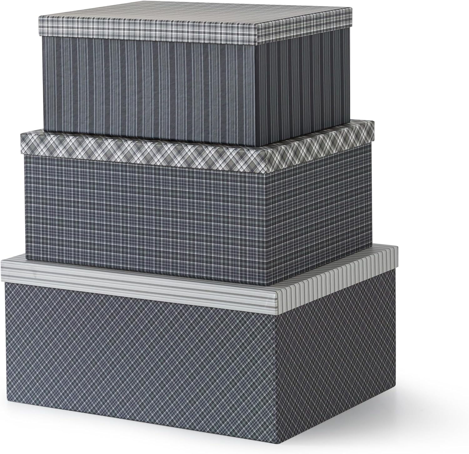 VERSATILE 3-BOX SET: This set includes three decorative gift boxes with lids in varying sizes (Small: 13" x 9.1" x 5.7", Medium: 14.6" x 10.4" x 6.3", Large: 16.5" x 11.6" x 7") to accommodate a range of gift sizes, from clothing and textiles to larger festive items, making them perfect for holiday gifting, especially for men.