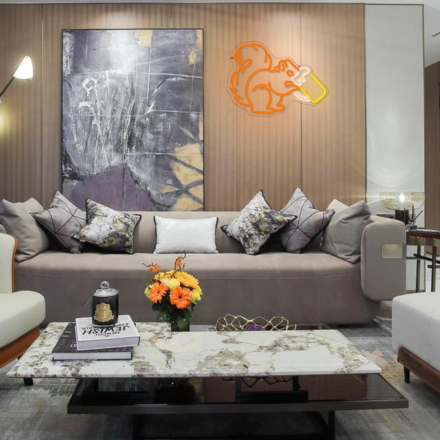 Unique Design:Squirrel neon sign features an orange squirrel pouting its butt and holding a yellow white wine glass, which is very cute and playful. Squirrels drinking beer LED lights create a warm and relaxing lighting atmosphere in the bar.