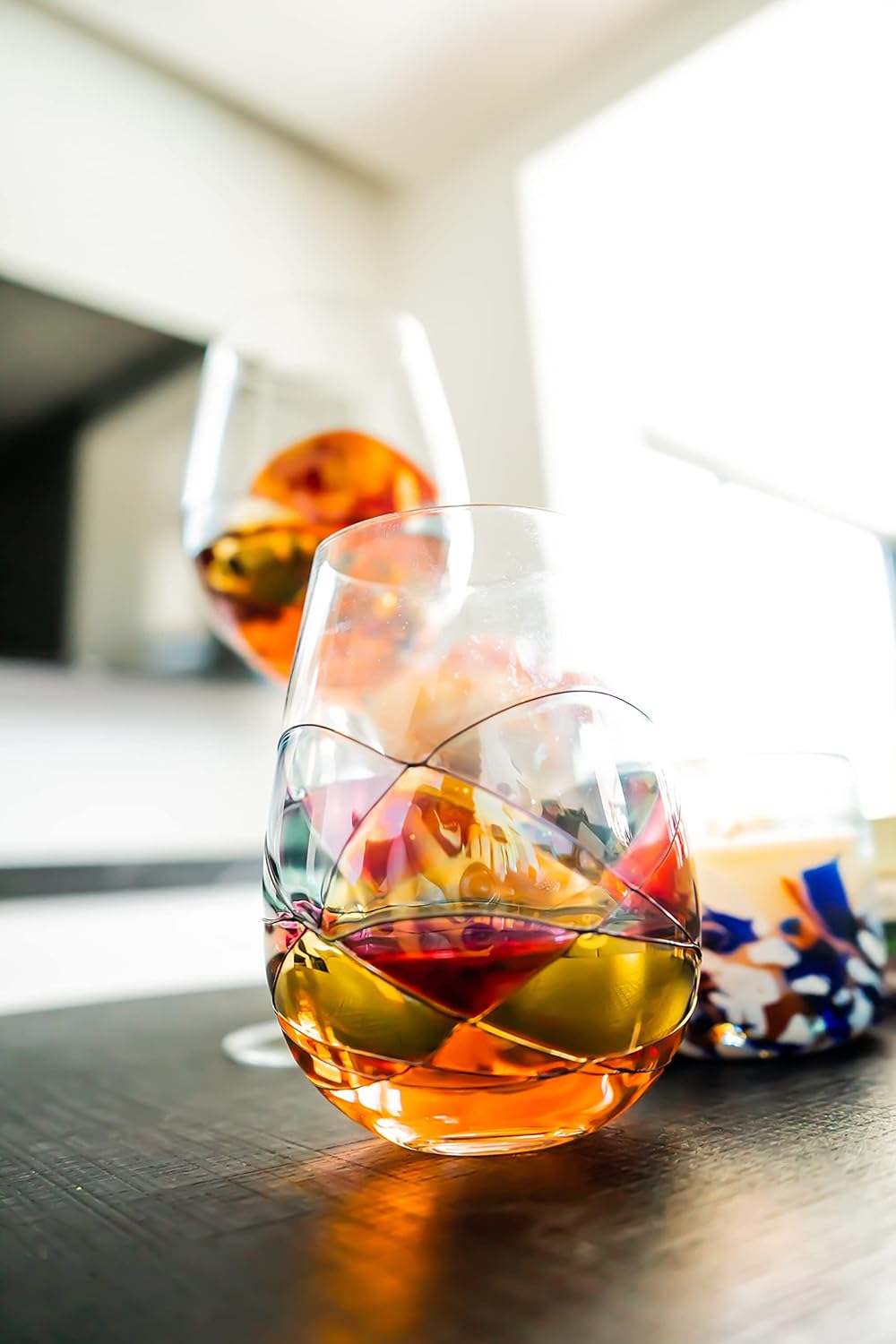 ✨ STEMLESS ELEGANCE FOR ANY SPECIAL MOMENT – Premium stemless wine glasses designed for red wine, white wine, rosé, and sparkling wine. These hand-blown, hand-painted glassware pieces combine a modern wine glass silhouette with the beauty of artisan wine cups, offering a comfortable grip and durable glass perfect for entertaining, dinners, parties, celebrations, and everyday use. Ideal as unique wine glasses for home, bar, or special events.