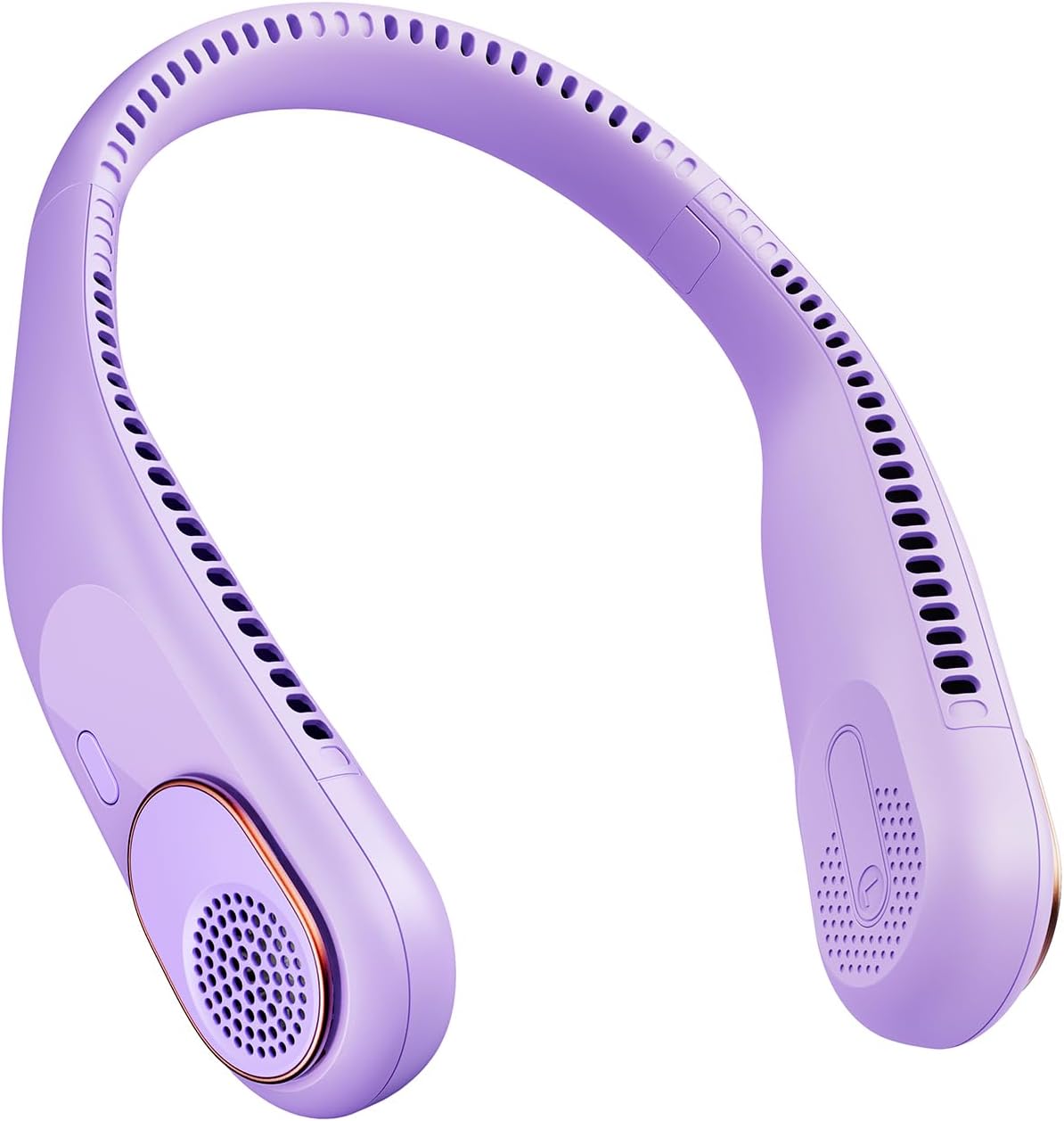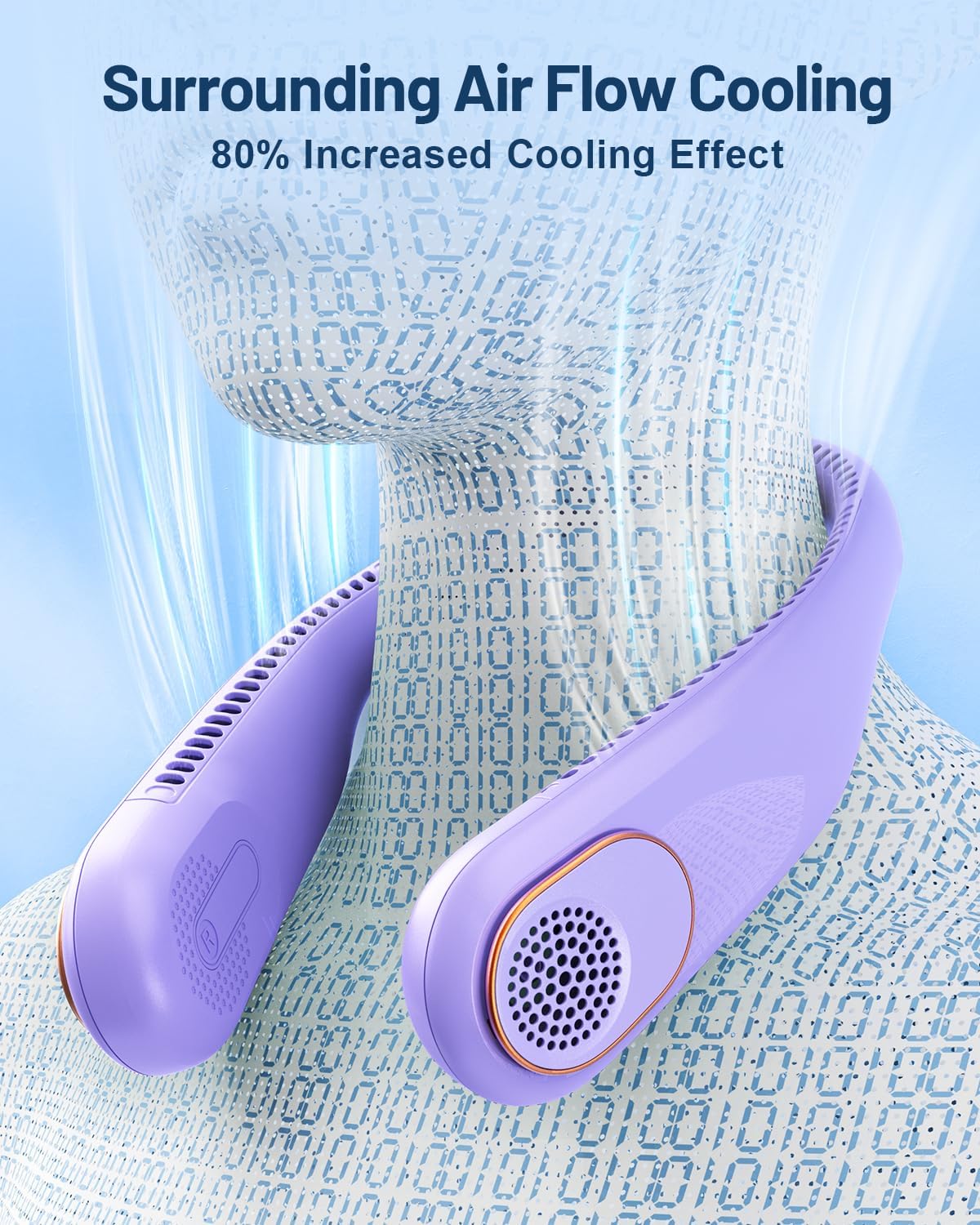 【Hands-free Design & Stylish】This stylish, wearable neck fan resembles a headset, offering a chic look while keeping you cool in hot weather. Perfect for maintaining makeup, wear it around your neck or discreetly carry it in your bag.