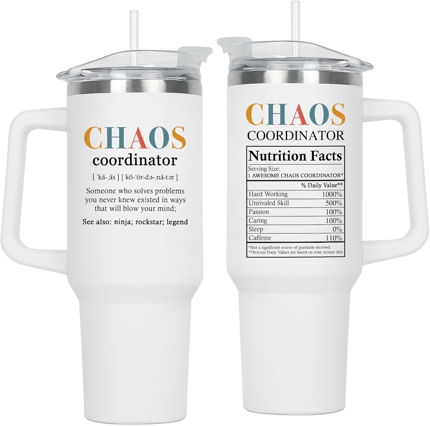 TEEZWONDER Thank You Gifts for Women - Chaos Coordinator Insulated 40 oz Tumbler with Handle - Funny Birthday Employee Appreciation Gifts for Women Coworkers Boss Colleagues Teachers Nurse