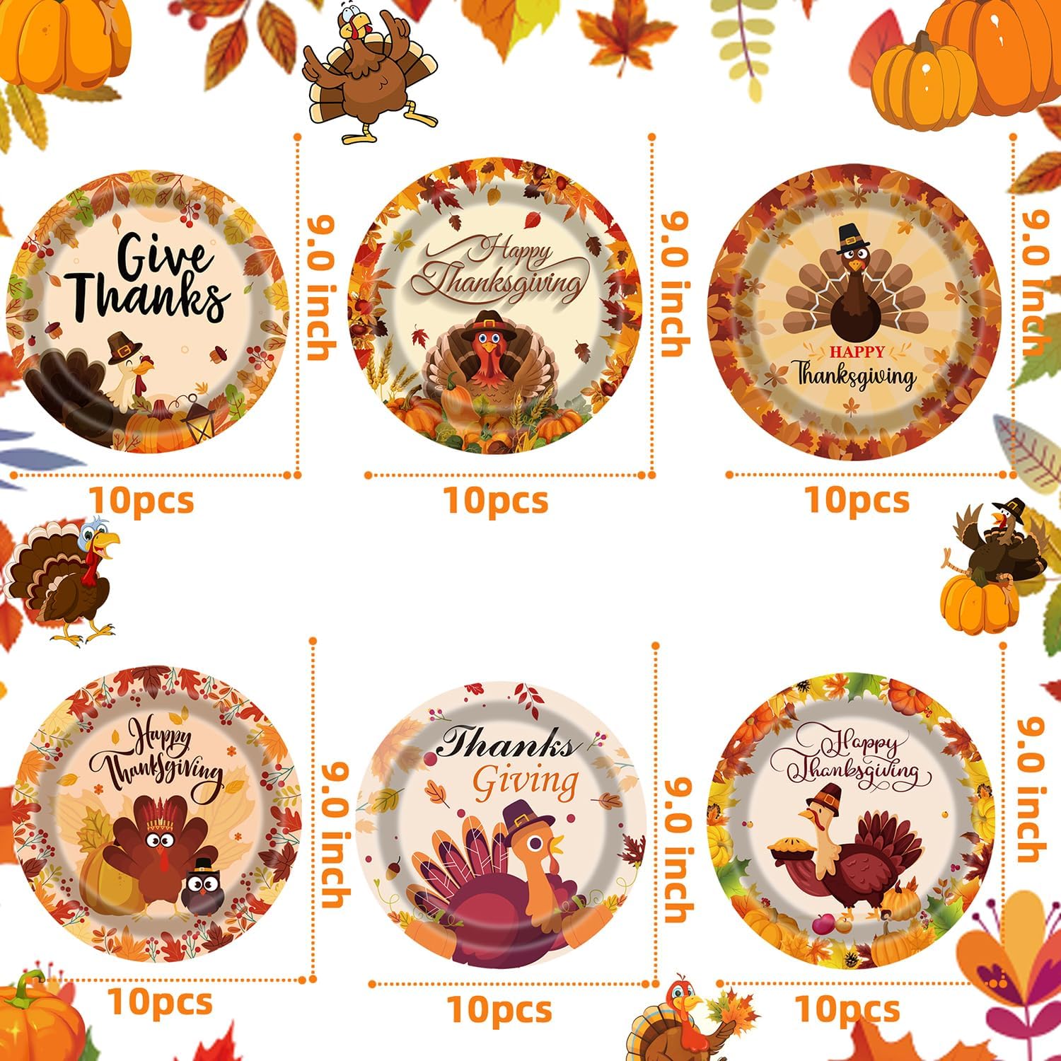 Thanksgiving Party Decorations Set:The package includes 60 pieces of Turkey paper plates, includes 6 different styles fall print, 10 pieces for each style; sufficient quantities can meet your home or party food serving needs, you can also share these Thanksgiving party favors with your friends or neighbors