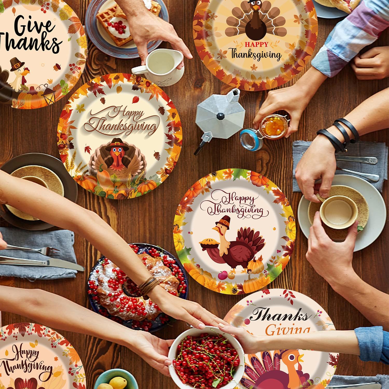 Beautiful Design: these Thanksgiving disposable plates are designed with various delicate fall elements, such as cute turkey autumn leaves pumpkins and Happy Thanksgiving font, creating a strong autumn and Thanksgiving atmosphere and bringing warmth and romance to party guests