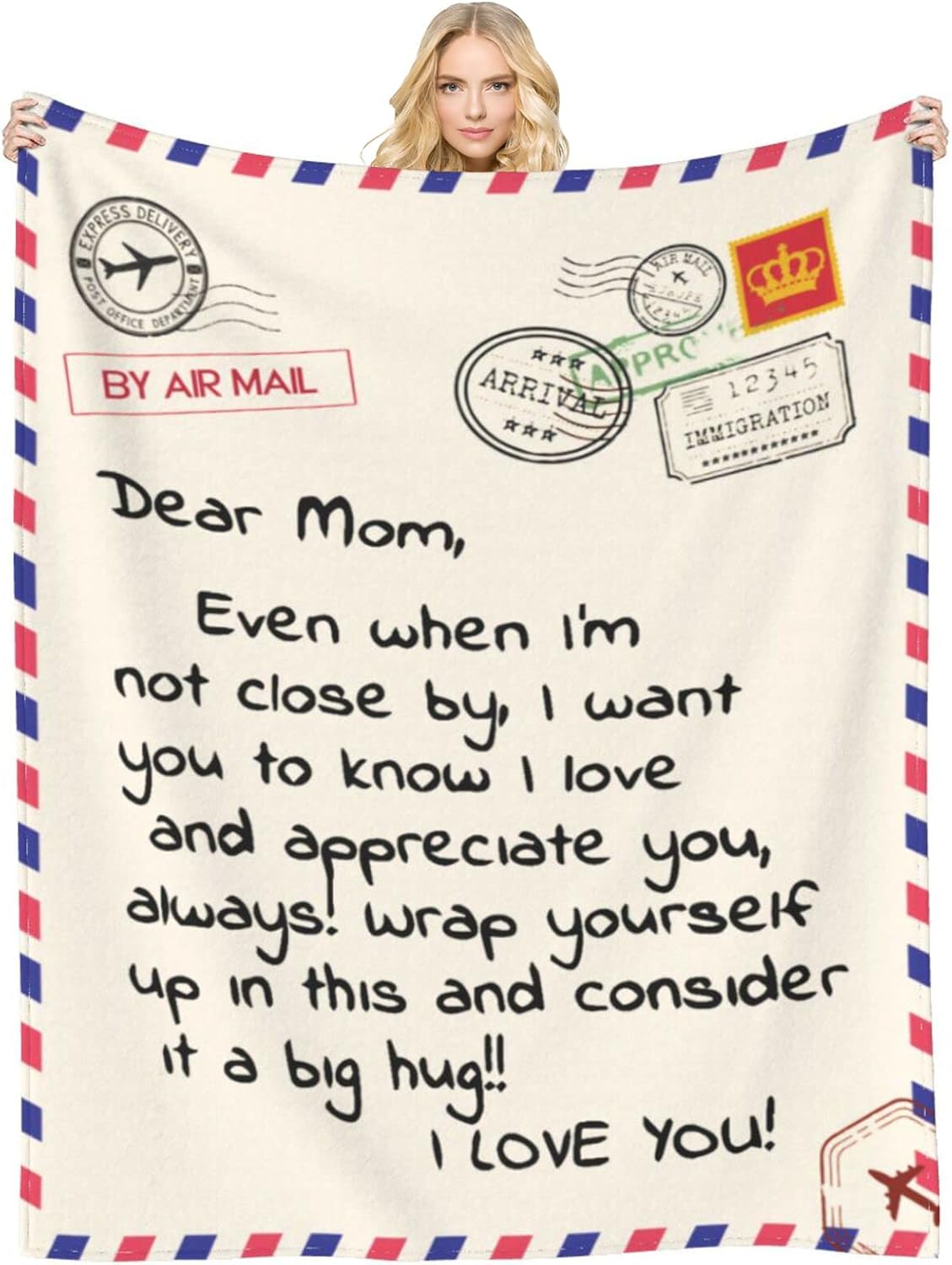 Throw Blankets Anniversary Birthday Gift for Mom from Daughter Son, Dear Mom Blanket for Mother's Day, Super Soft Flannel Throw Blankets for Christmas Valentines Day for Bed Couch(50x60)